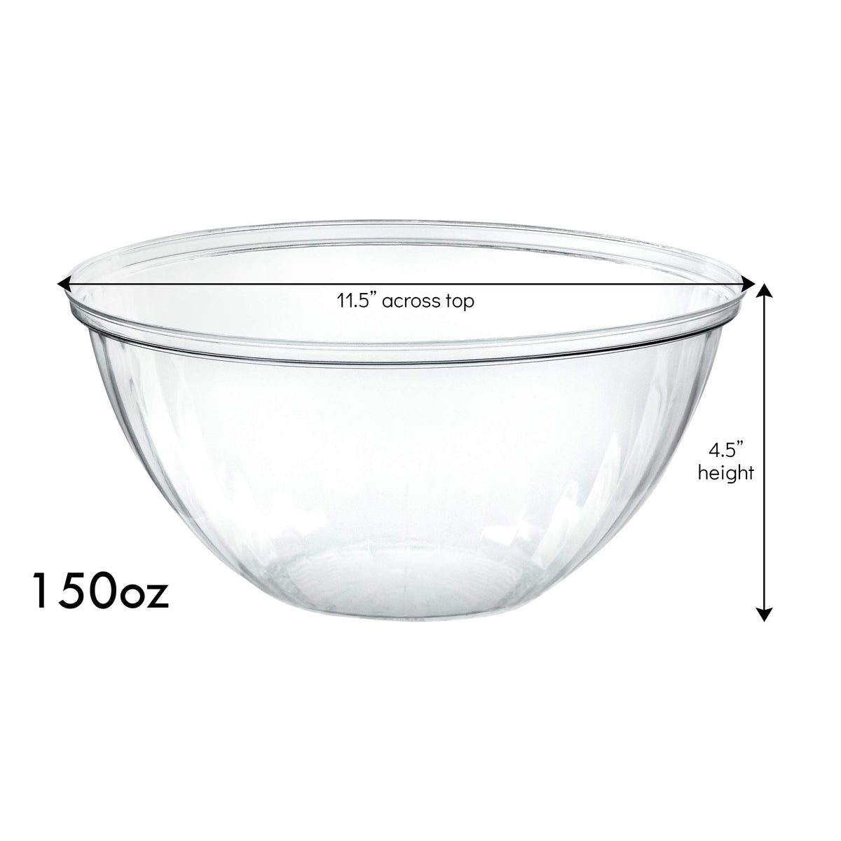- Q: What size are the PLASTICPRO disposable serving bowls? A: The PLASTICPRO disposable serving bowls are 150 ounces each, making them ideal for snacks, salads, and party dishes.
