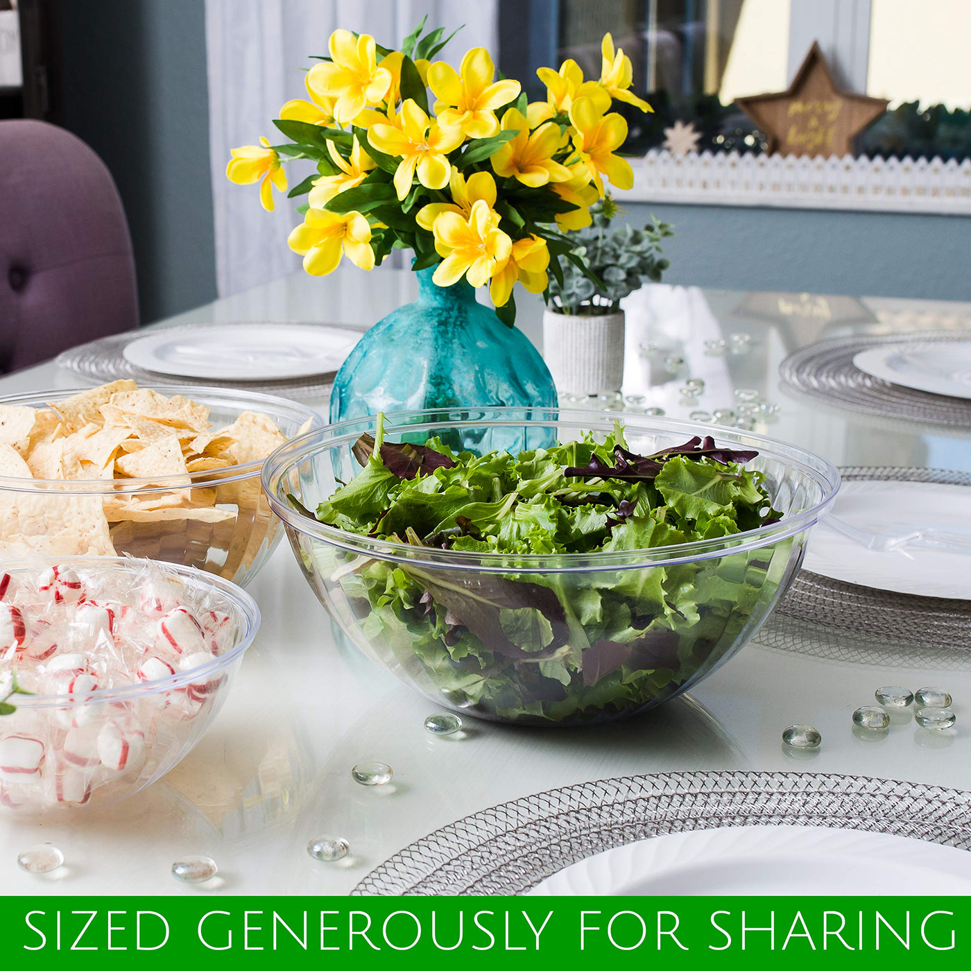 Plasticpro Disposable 150 Ounce Round Crystal Clear Plastic Serving Bowls For Snack Or Chip ,Candy Dish, Party Salad Container P