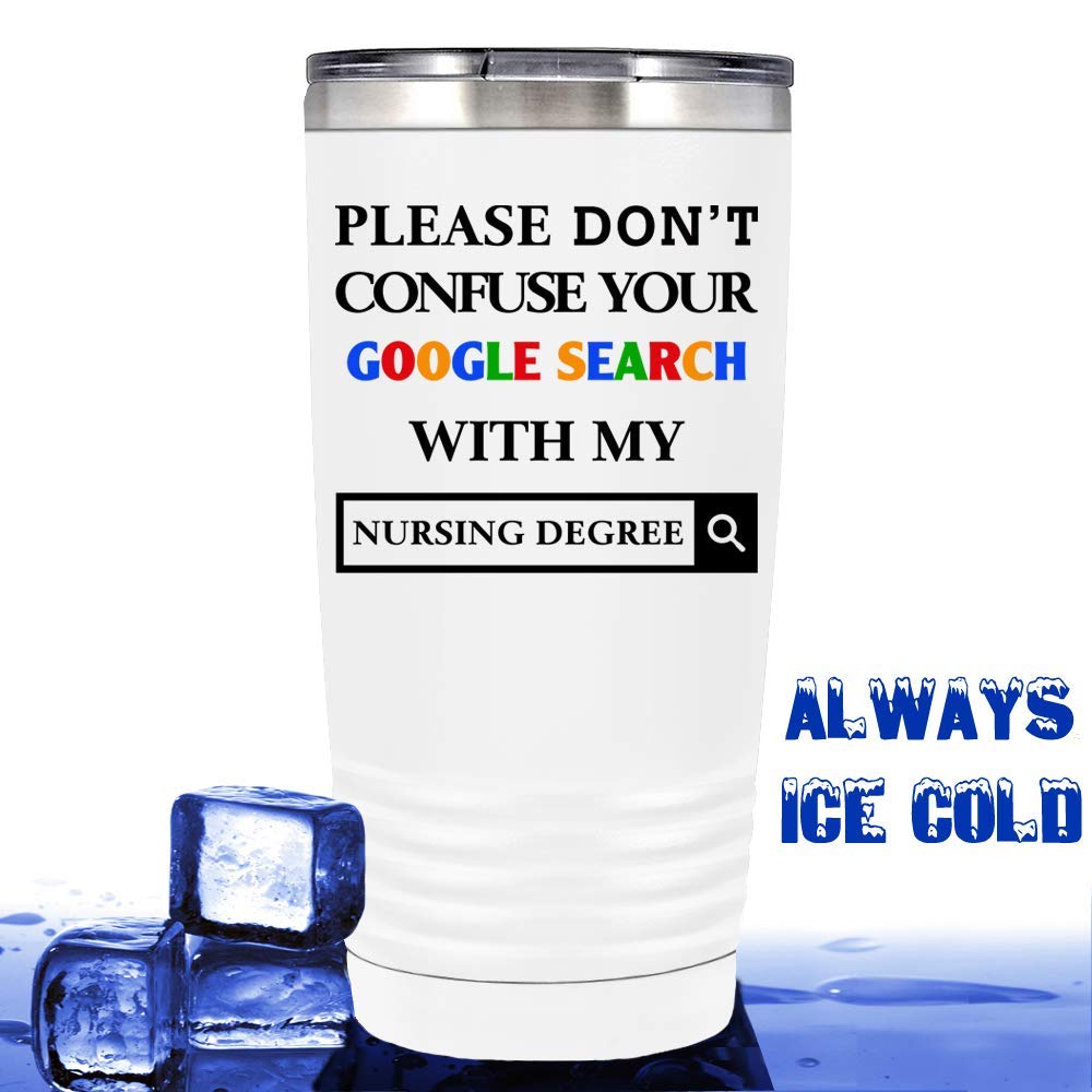 Please Don'T Confuse Your Google Search With My Nursing Degree On White 20 Oz Tumbler With Lid - Insulated Cup - Travel Mug