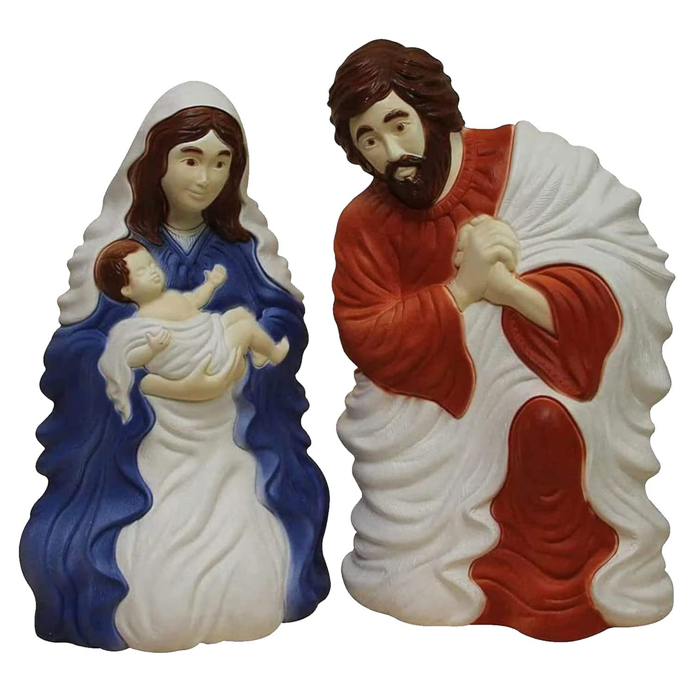 PMU Christmas Light-Up Nativity Set - Plastic Blow Mold 2 Piece Statue Illuminated with 6 Cord and Light - Nativity Family Set