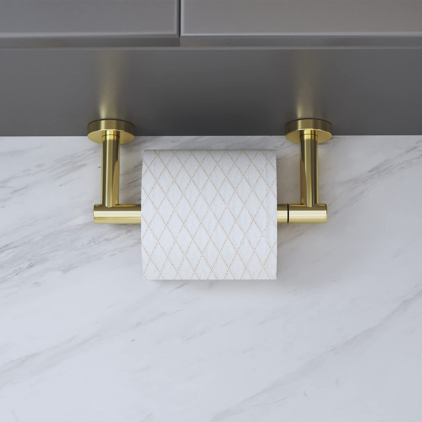 - Q: What are the dimensions of the POKIM Gold Toilet Paper Holder? A: The holder's feet measure 2.44 inches in length, while the rod measures 5.51 inches, making it suitable for large mega rolls.