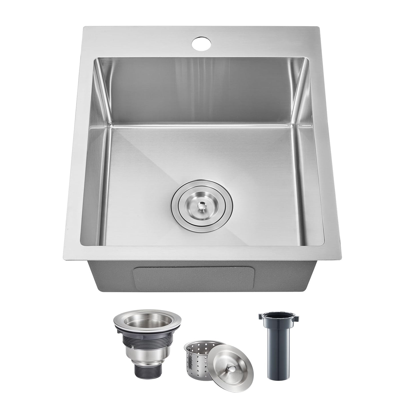 Popfly 15 Inch Bar Prep Sink, Sus 304 Stainless Steel Top Mount Handmade Single Bowl 18 Gauge Drop In Kitchen Small Rv Sink, Bru