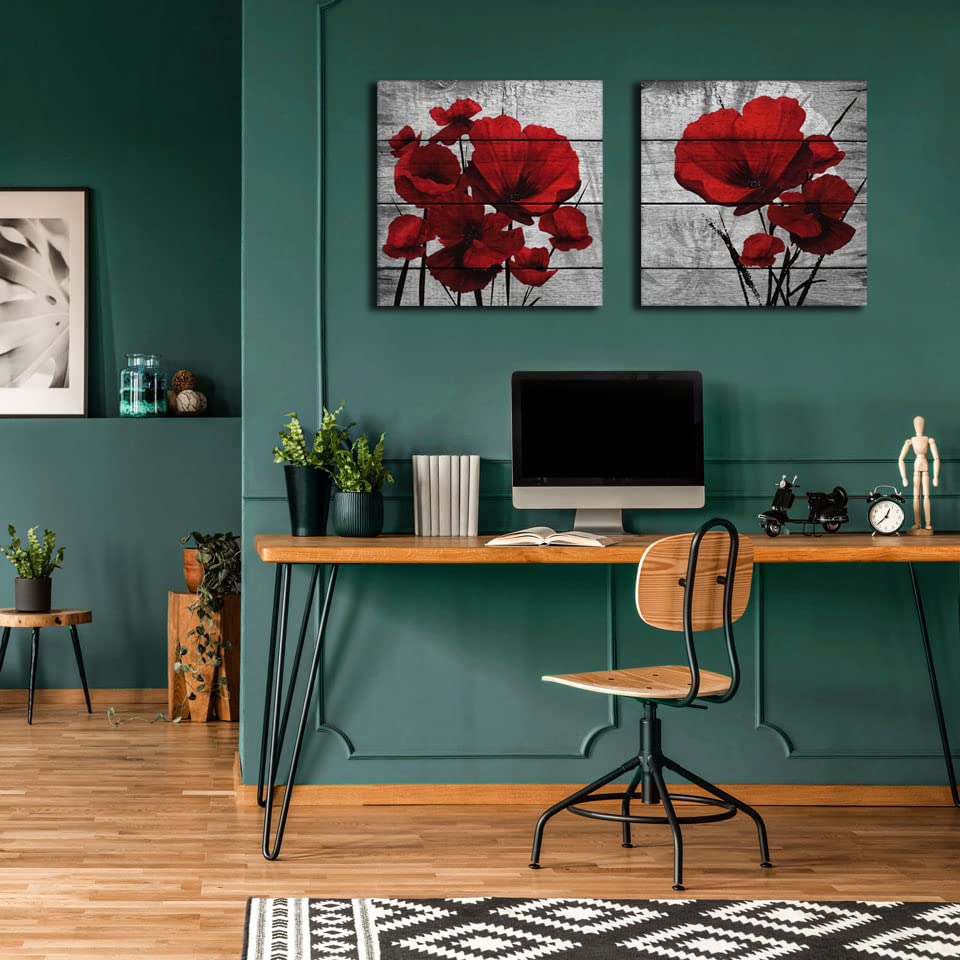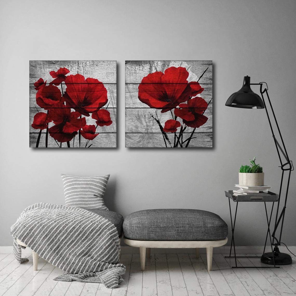 Poppy Wall Art,Big Red Poppies Canvas Wall Decor,Red Black Gray 2 Piece Print Pictures,Crimson Red Flower Bedroom Living Room De
