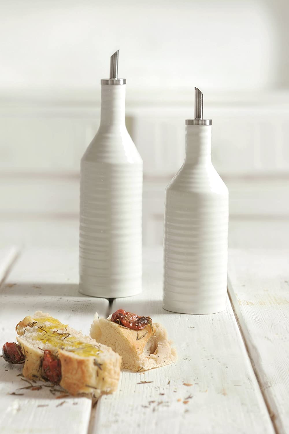 Portmeirion Sophie Conran White Oil And Vinegar Drizzling Set | 10.5 Inch Oil And 9 Inch Vinegar Dispenser Cruet Bottle Set | Ma