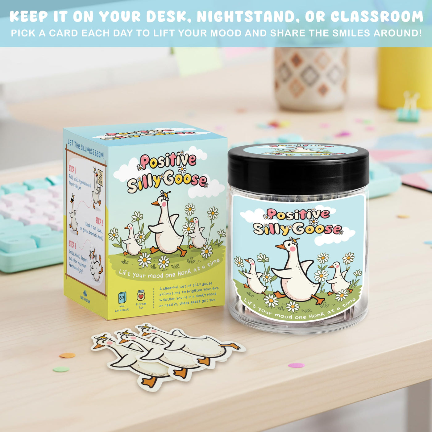Positive Goose Jar with 60 Affirmation Cards, Emotional Support Goose, Silly Goose Gifts For Women, Mini Desk Goose, Stocking St