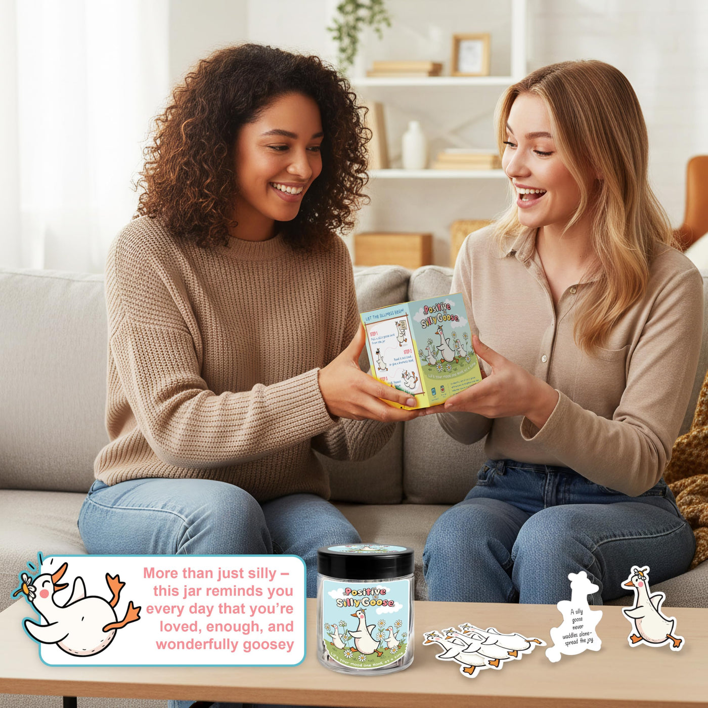Add some joy and laughter to your day with the Positive Silly Goose Affirmation Jar, a cheerful collection of 60 mini positive affirmations that lift your mood one honk at a time. Each silly goose note is filled with humor and encouragement - perfect for anyone who needs a giggle or a boost of positivity. This is a unique twist on traditional affirmation cards for women, blending uplifting words with a dose of goofiness. It makes a delightful choice for birthday gifts for women, gifts for teenage girls, or best friend gifts that remind them not to take life too seriously. Great as funny goose gifts, gag gifts for women, or white elephant gifts that make everyone laugh. Whether its daughter gifts from mom, sisters gifts from sister, or friendship gifts for women, this jar is guaranteed to brighten their mood. A fun piece of d cor and a daily reminder to stay silly and shine bright - ideal for stuff for teen girls, cool stuff for teen girls, or even Christmas things for teen girls. These positive affirmations cards make every day a honking good one!