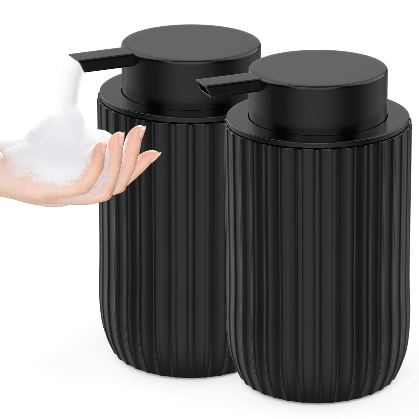 Pososto Ceramic Foaming Hand Soap Dispenser 2Pack,12 Oz Bathroom Soap Dispenser, Lotion Dispenser For Kitchen, Refillable Matte