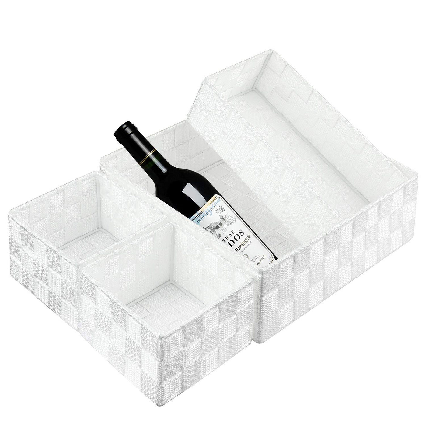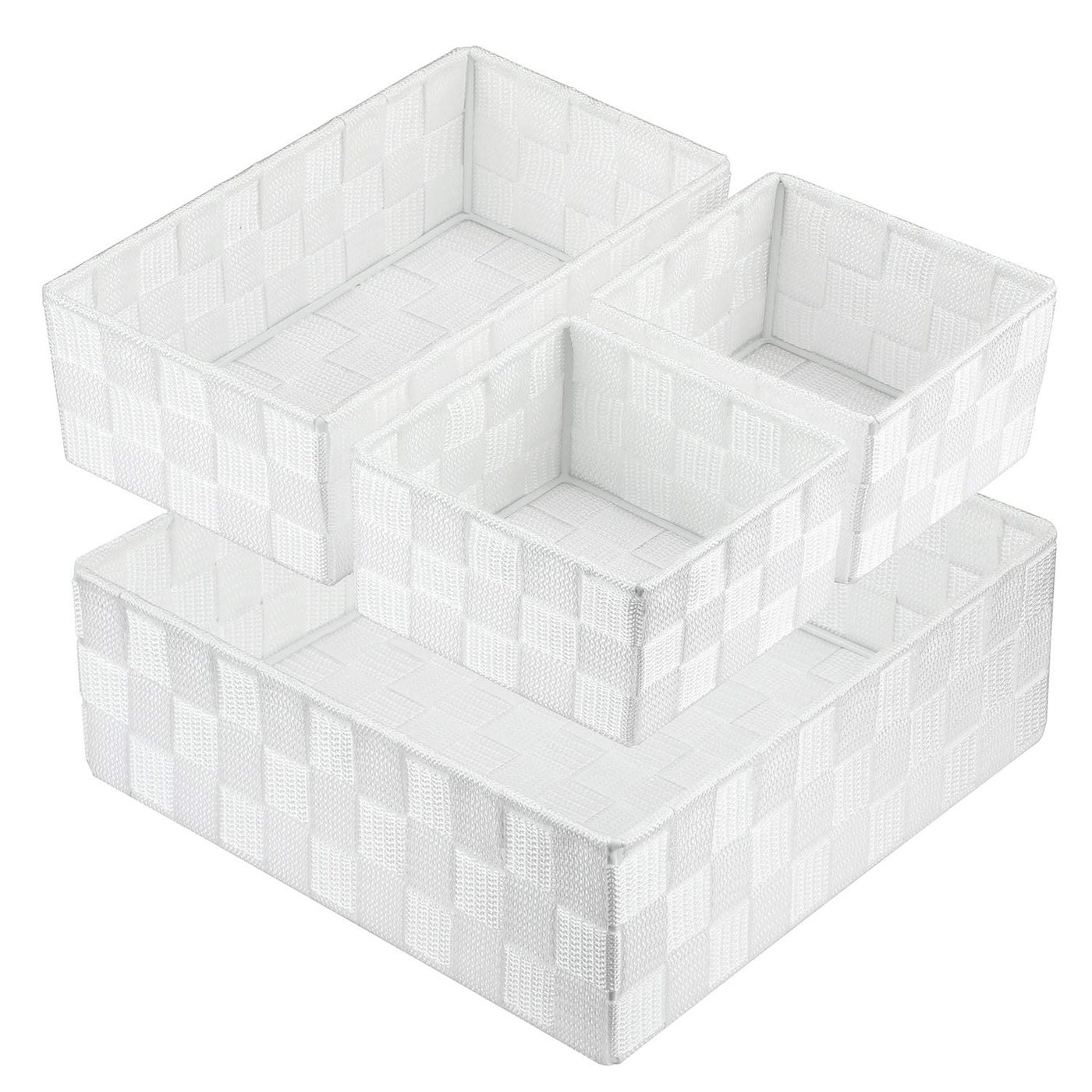 Posprica Woven Storage Box Cube Basket Bin Container Tote Organizer Divider for Drawer,Closet,Shelf, Dresser (White)