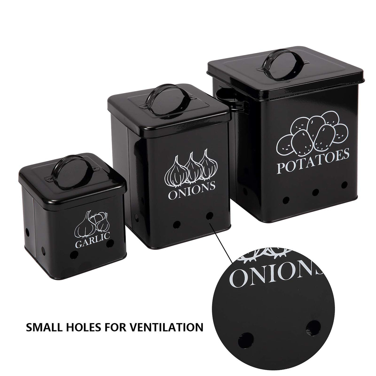 Potato Onion Kitchen Storage Canisters Jars Pots Containers 3 Pack Set - Potatoe, Garlic Bin Caddy, Long Shelf Life With Aeratin