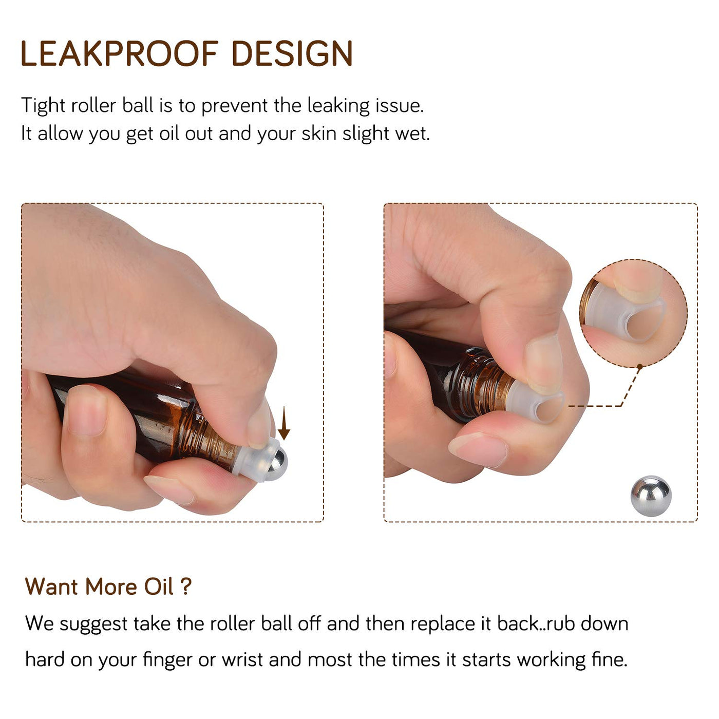 • Q: What is the purpose of the stainless steel roller balls? A: The stainless steel roller balls provide a smooth and even application of essential oils while preventing leakage due to their tight fit.