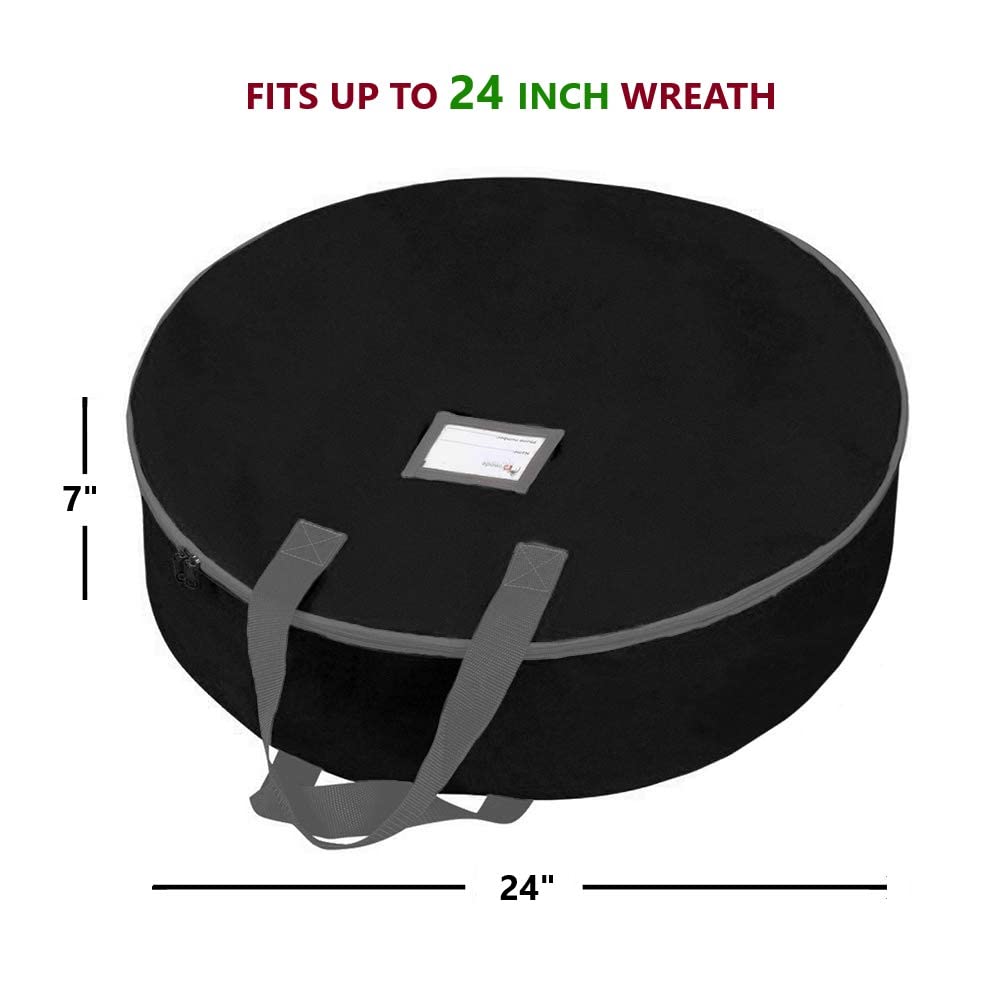 - Q: What size wreaths does this storage bag accommodate? A: This storage bag is designed to hold standard artificial door wreaths measuring up to 24 inches in diameter.