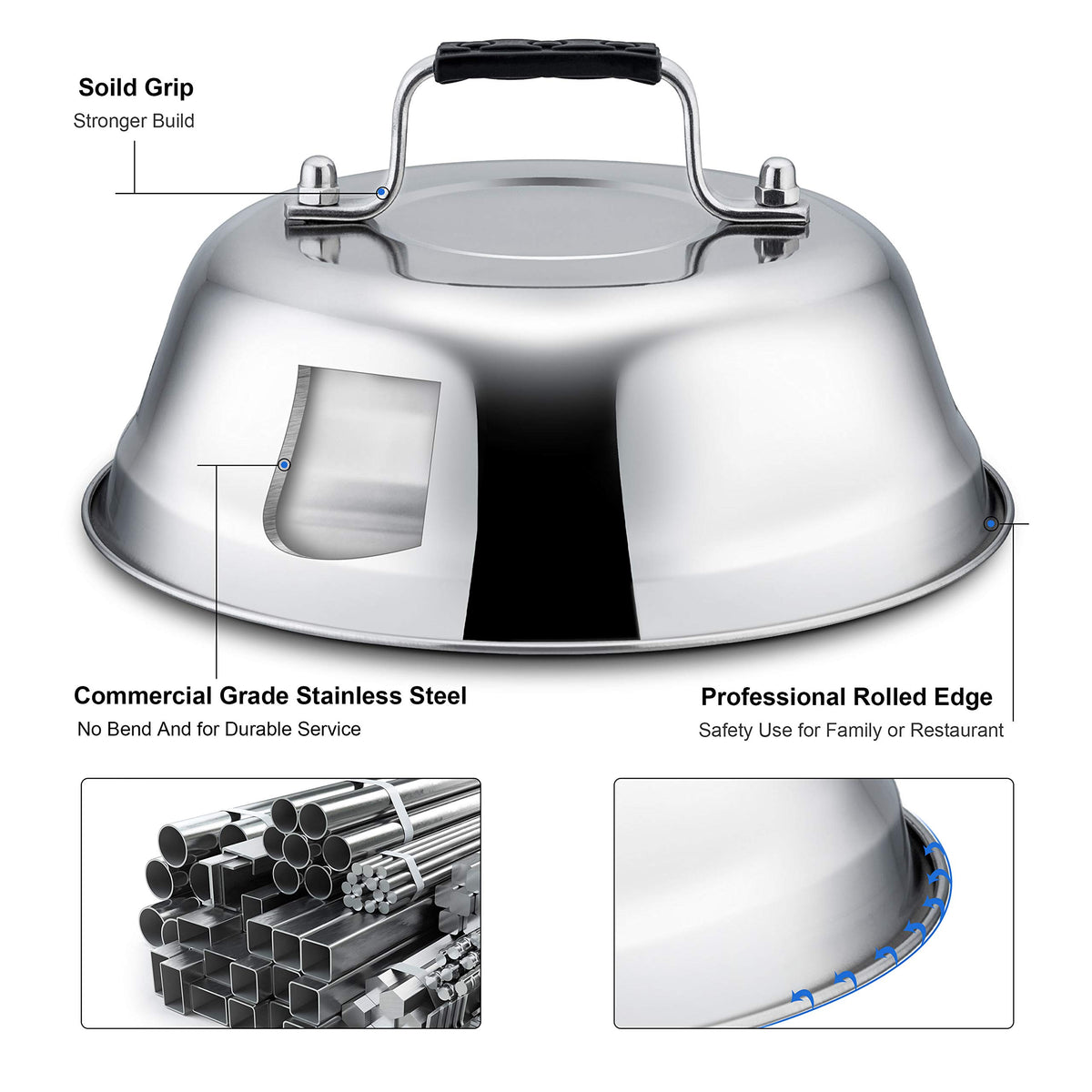 - Q: What material is the melting dome lid set made from? A: The melting dome lid set is made from commercial-grade stainless steel, which ensures durability and long-lasting performance.