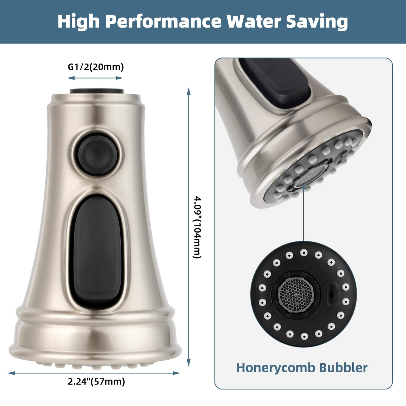 • Q: How do I install the pull down spray head? A: Installation is simple; you just need to unscrew your existing faucet head and screw on the new spray head. No tools are required, and a manual is included for reference.