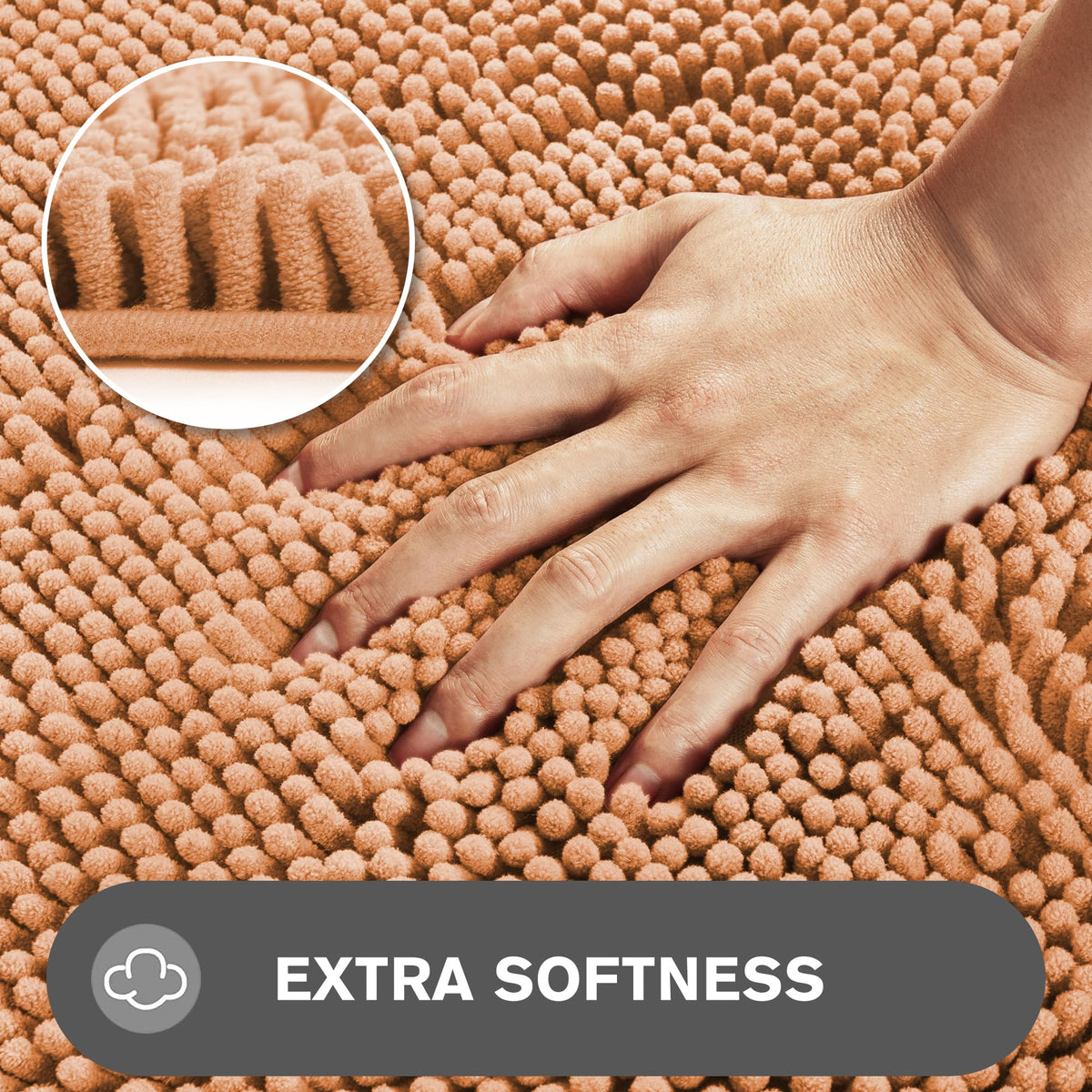 Pureswan Peach Bathroom Rugs - Absorbent And Washable Bath Mat, Non-Slip, Thick Soft Chenille Bath Rugs For Bathroom Floor, Show