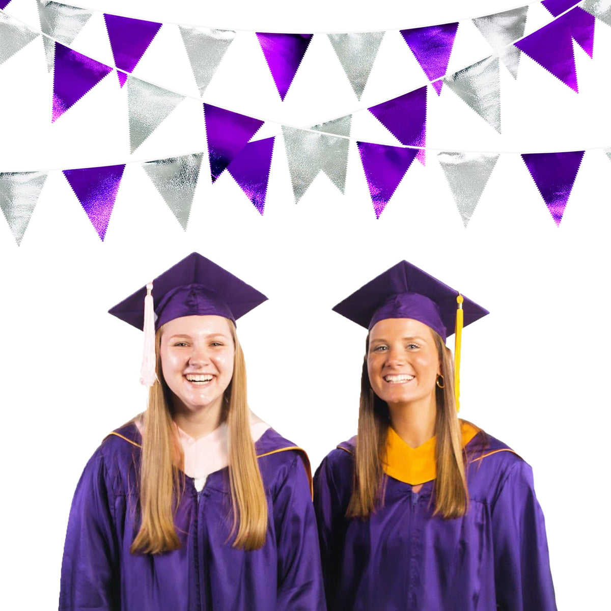Purple And Silver Party Decorations Triangle Pennant Banner Flag Metallic Fabric Bunting Garland For Birthday Graduation Retirem