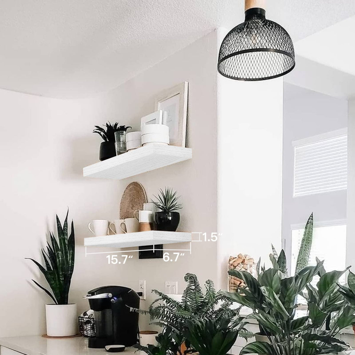 QEEIG White Floating Shelves Bathroom Decor - Wall Mounted Shelf Bedroom Modern Small 16 inch Set of 2 (008-40W)