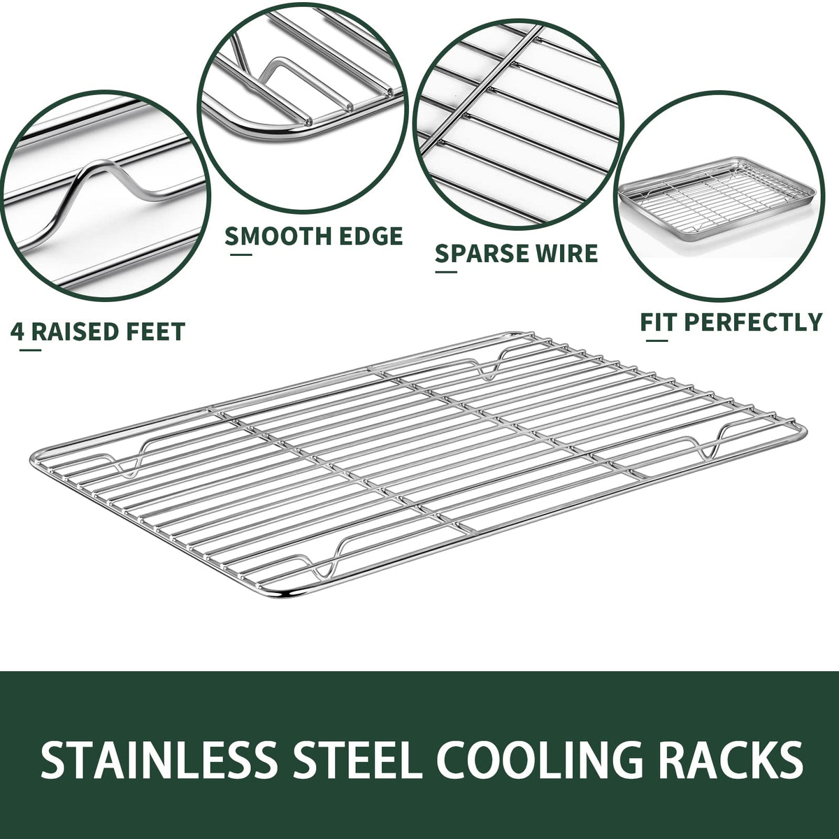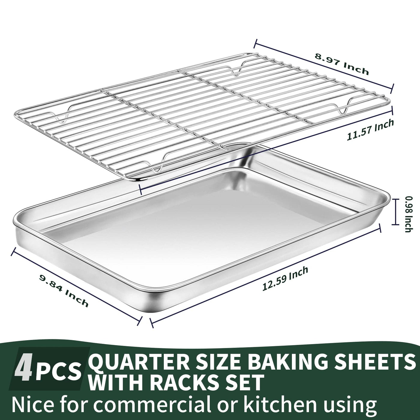 Quarter Sheet Pan With Wire Rack Set [2 Baking Sheets + 2 Cooling Racks], Cekee Stainless Steel Cookie Sheets For Baking With Ba
