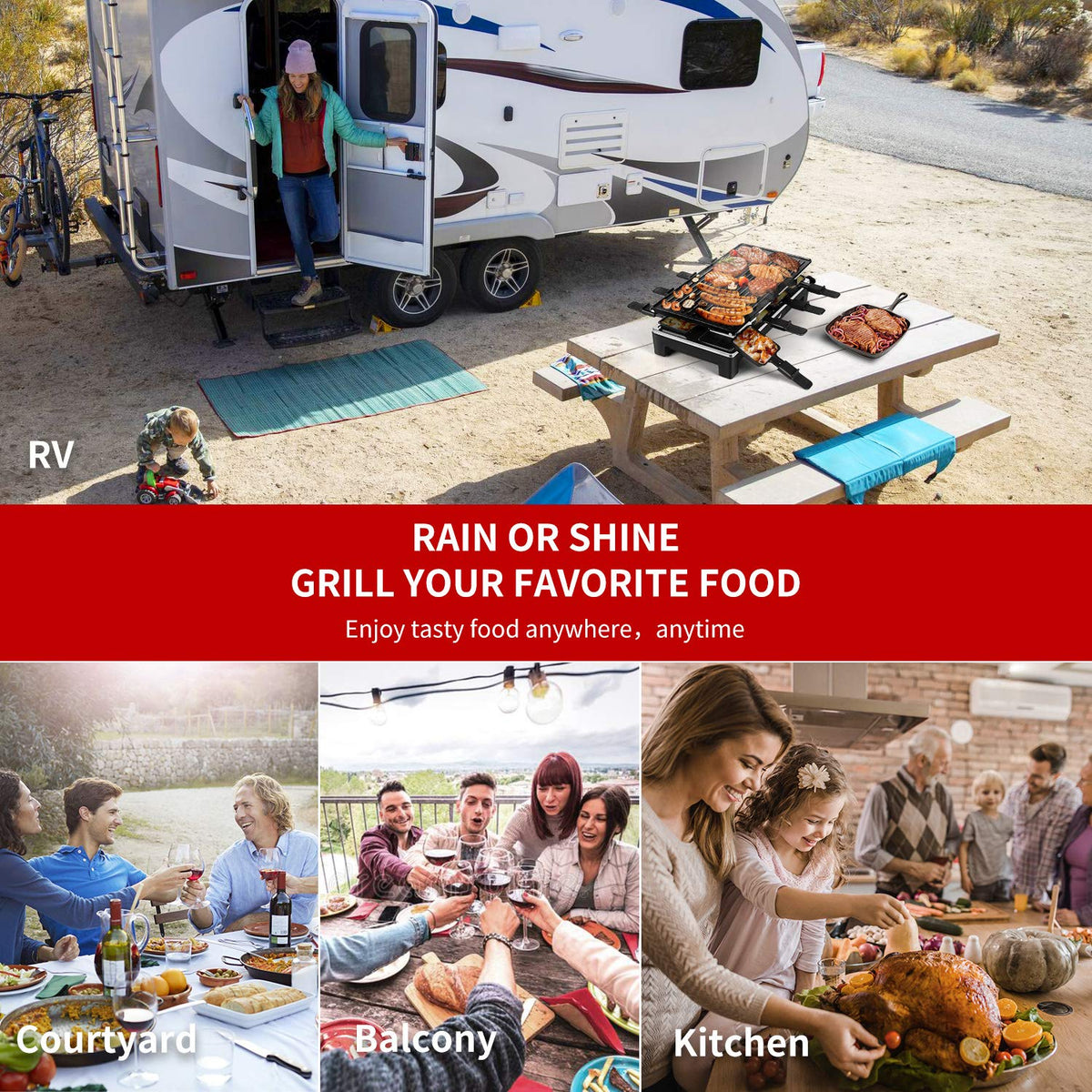 Raclette Grill Techwood Electric Table Indoor Grill Korean BBQ Grill Removable 2-in-1 Non-Stick Grill Plate 1500W Fast Heating with 8 Cheese Melt Pans Ideal for Parties and Family Fun