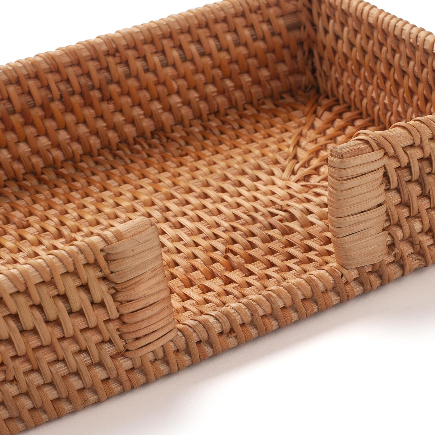 Rattan Napkin Holder Rectangle Woven Flat Napkin Basket Tray For Tables 9.5'' X 5.5'' X 2'' (Rectangle)