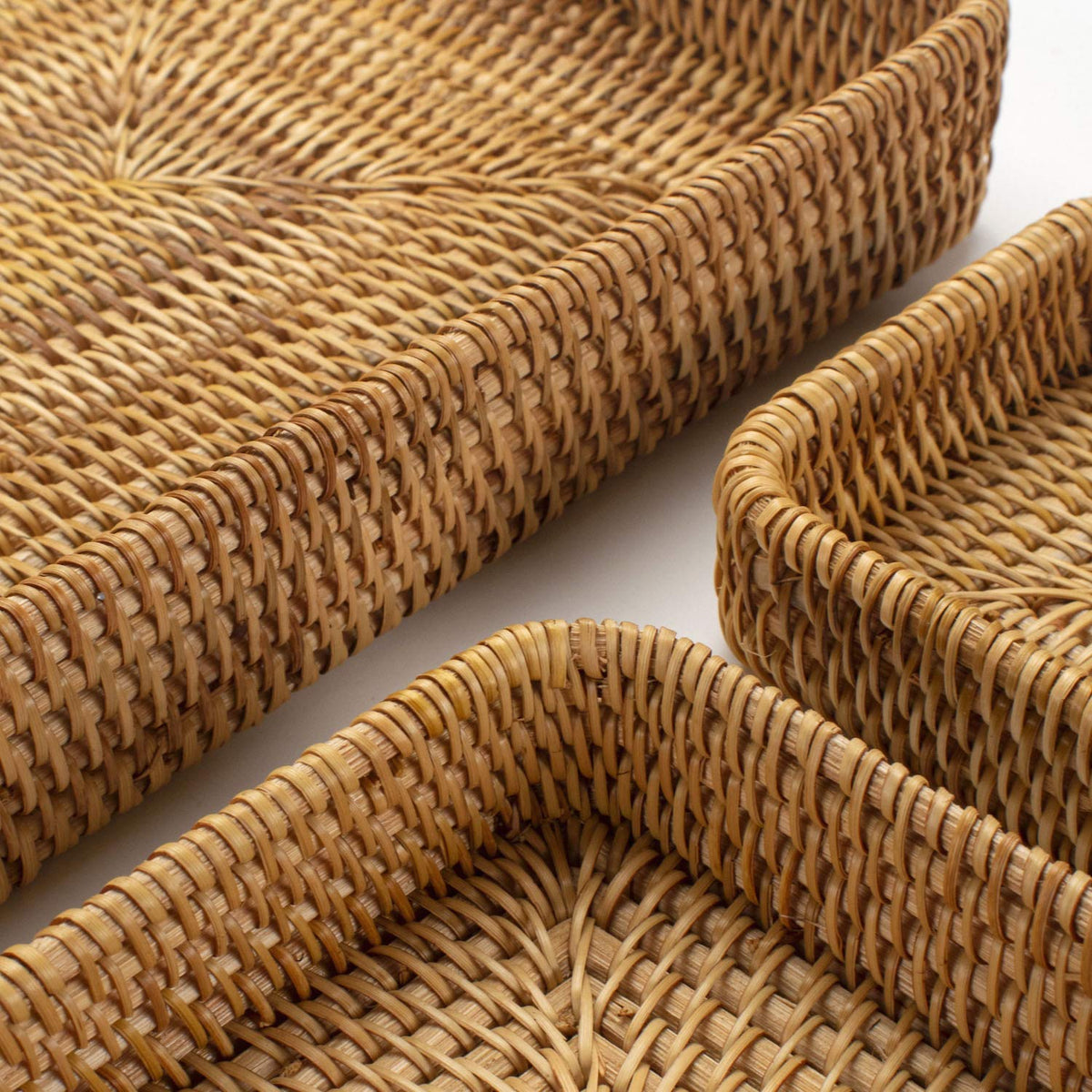 • Q: Do the trays have any paint or chemical finishes? A: No, the trays are made from natural rattan and do not contain any paint or chemical finishes, making them safe for food use.