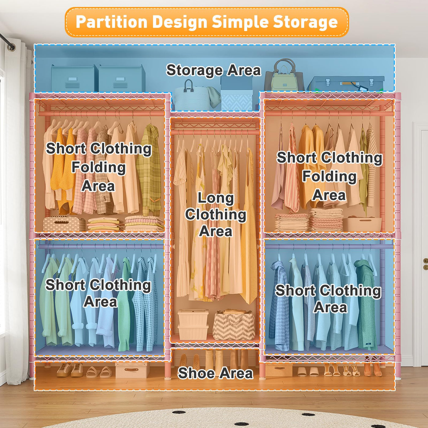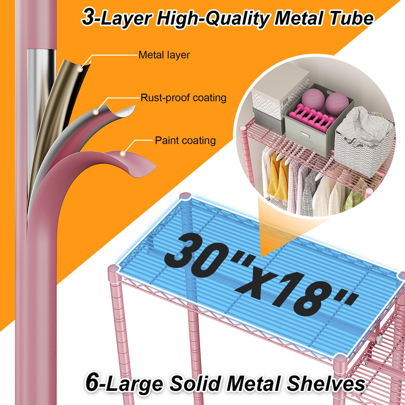 Raybee Pink Clothes Rack, Heavy Duty Clothing Racks For Hanging Clothes Load 835Lbs, Metal Freestanding Closet, Clothing Rack He