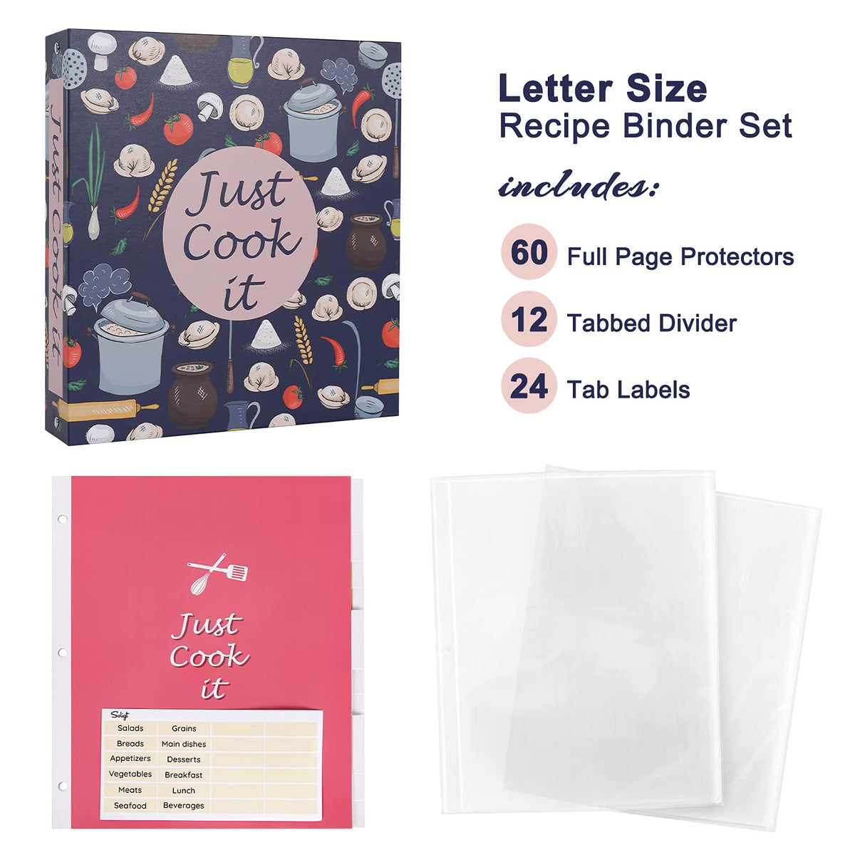 - Q: What are the dimensions of the Recipe Binder Kit? A: The Recipe Binder Kit measures 11 inches by 11.5 inches, perfectly accommodating standard letter-sized recipes.