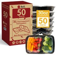 Reli. Meal Prep Containers, 30 Oz. (50 Pack) - Black 2 Compartment Food Containers With Lids, Microwavable Food Storage Containe