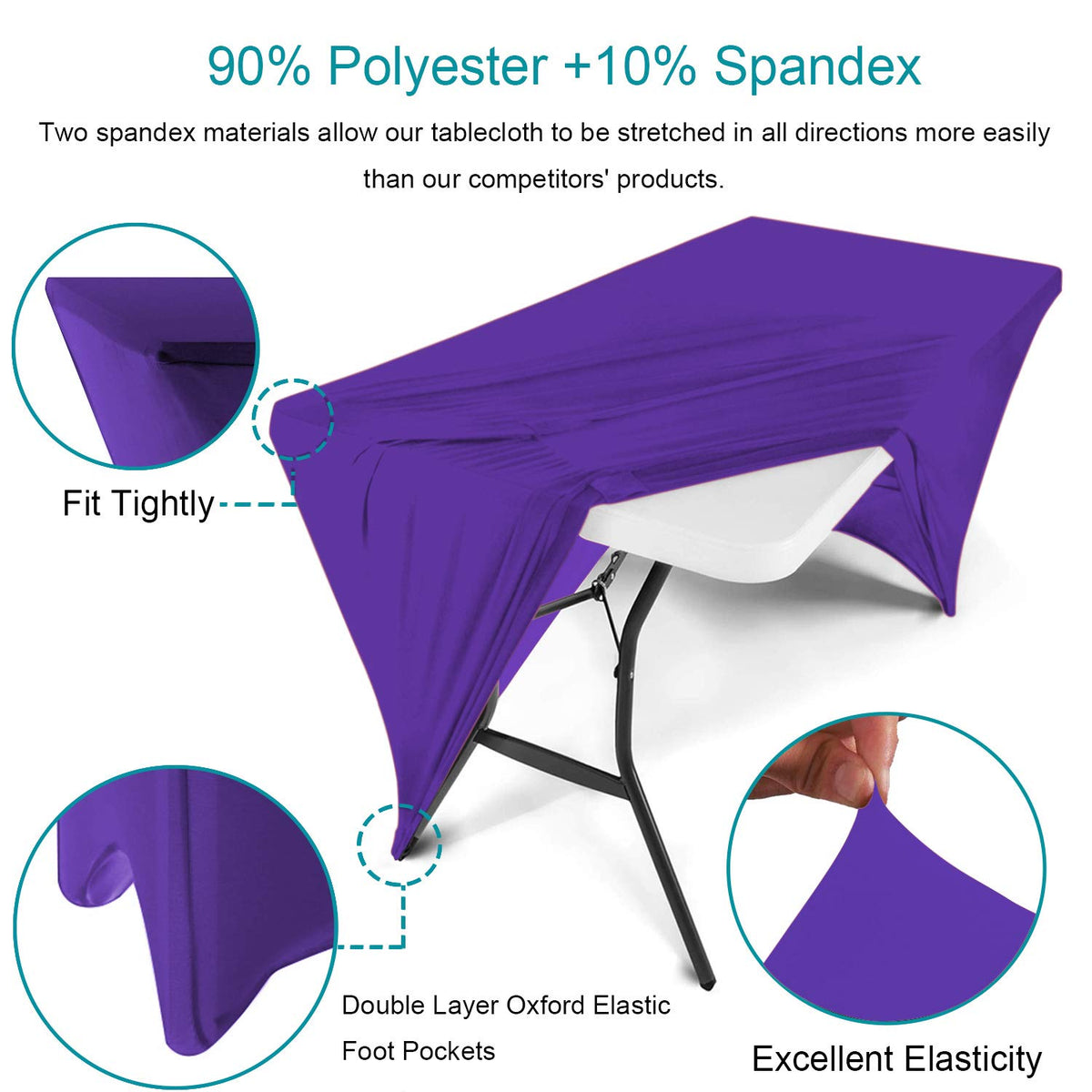 RELIANCER 2 Pack 8FT Rectangular Spandex Table Cover Four-Way Tight Fitted Stretch Tablecloth Table Cloth for Outdoor Party DJ Tradeshow Banquet Vendor Wedding Celebration (2PC 8FT Purple)
