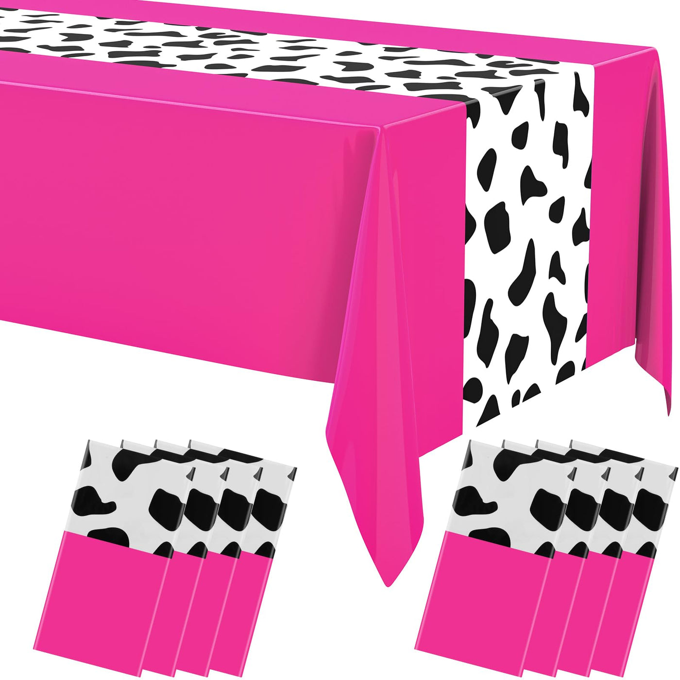 Remagr 8 Pcs 54 x 108 Inch Cow Print Tablecloth Party Decor Western Table Runner Cowboy Cowgirl Plastic Rustic Disco Table Cover