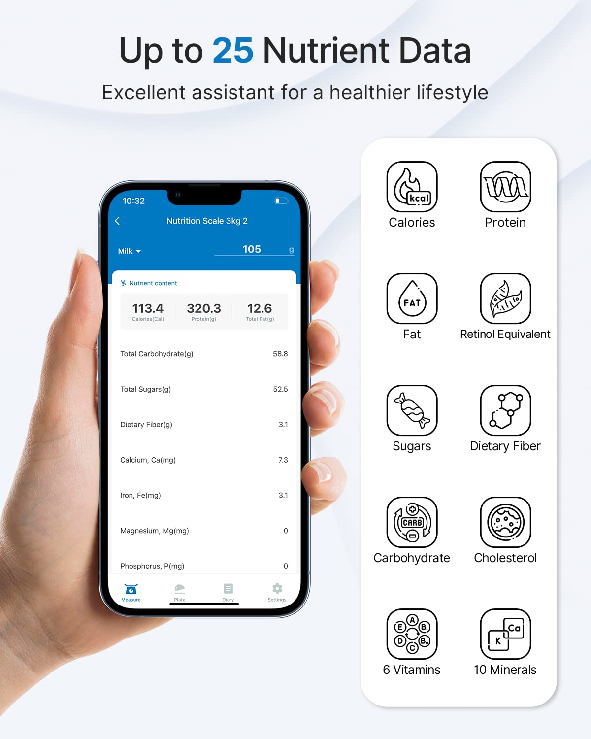 Renpho Digital Food Scale, Kitchen Scale Weight Grams And Oz For Baking, Cooking And Coffee With Nutritional Calculator For Keto