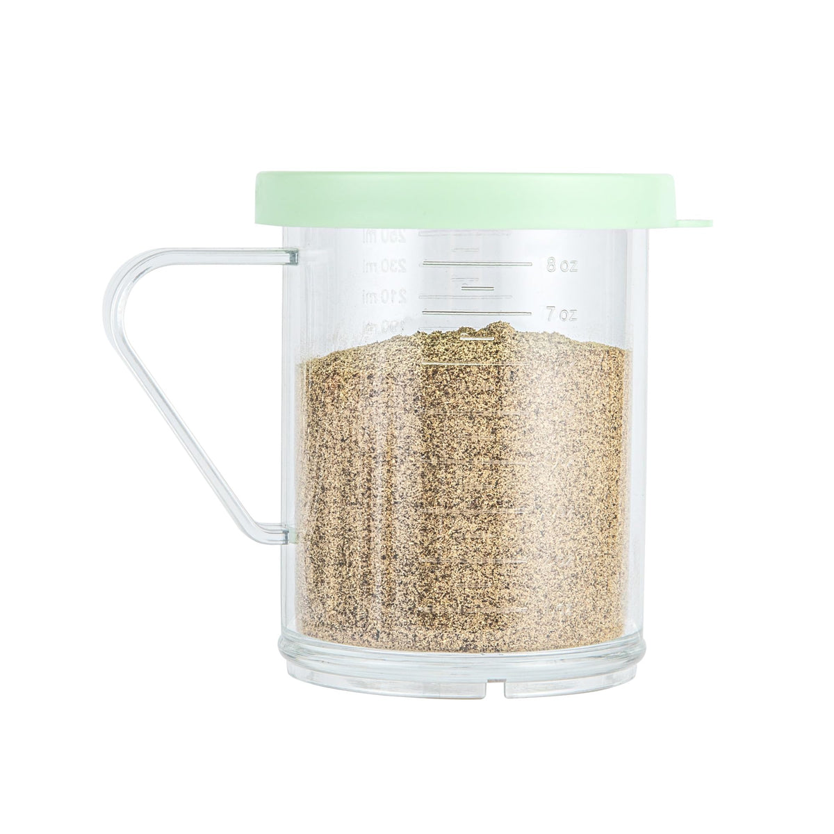 Restaurantware Rw Base 10 Ounce Clear Plastic Dredge Spice Shaker 1 Reusable Dry Rub Shaker - Includes Green Perforated Lid With