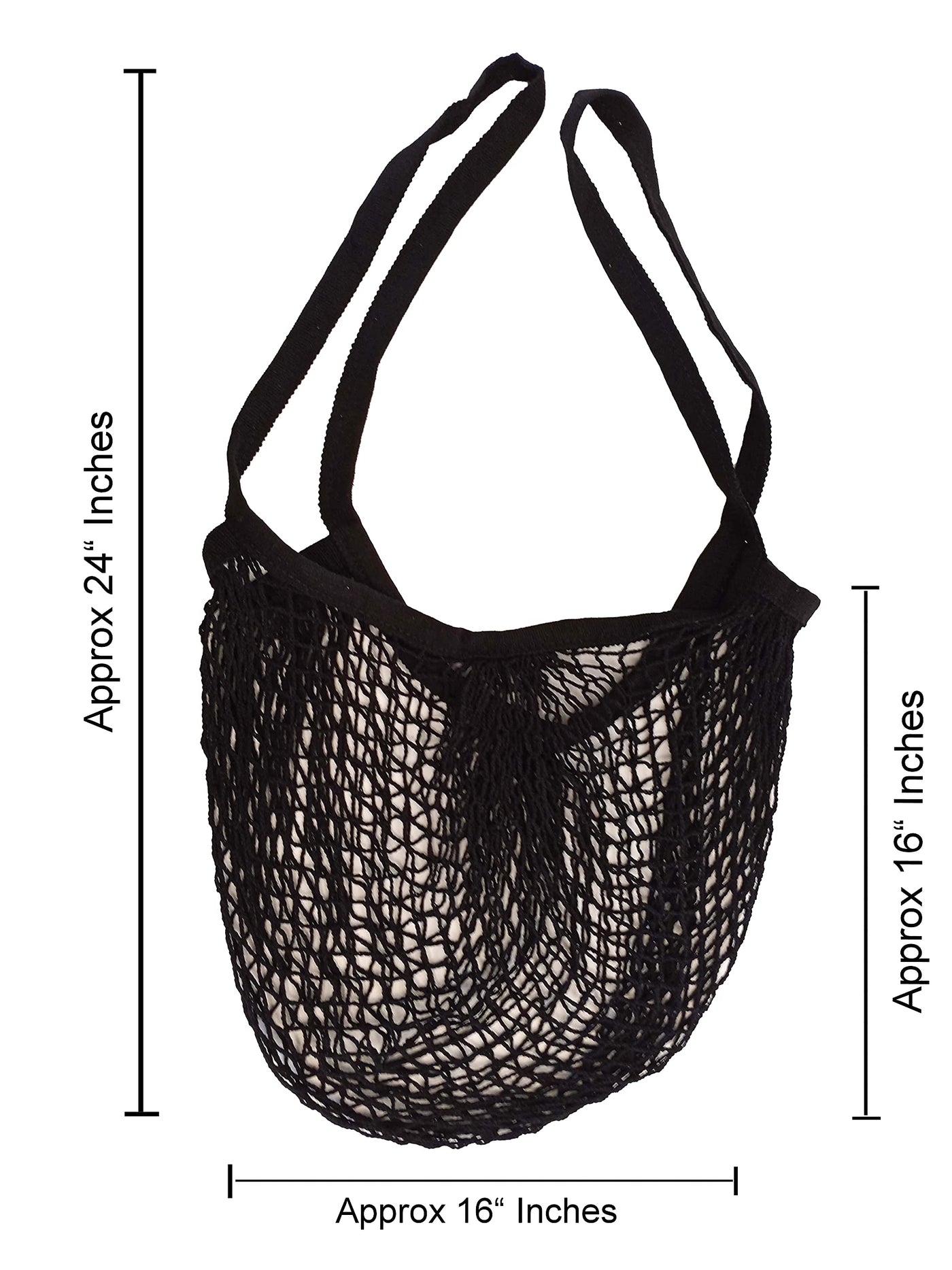 Reusable Long Handle Grocery Bags, Fruit And Vegetable Shoulder Bag, Washable Cotton Mesh String Organizer Shopping Handbags