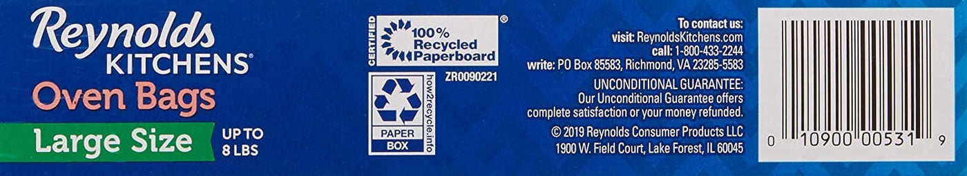 - Q: What sizes do the Reynolds Oven Bags come in? A: The Reynolds Oven Bags are large, measuring 16 inches by 17.5 inches, making them suitable for larger meals.