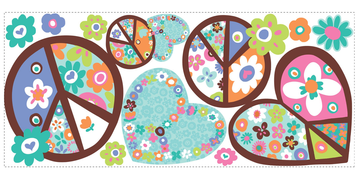 Roommates Rmk1621Gm Heart And Flower Peace Sign Peel And Stick Giant Wall Decal