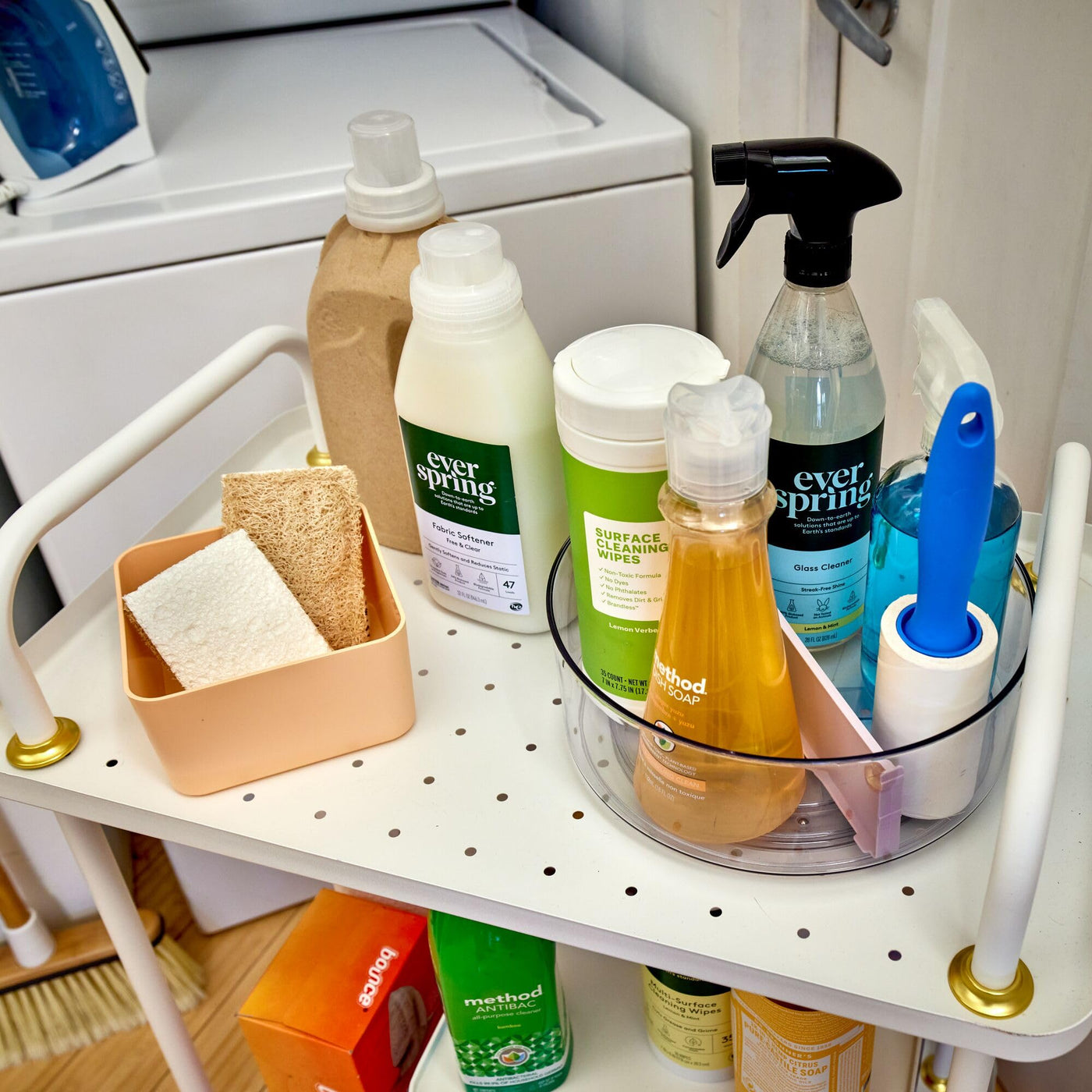 • Q: What types of items can I store in the Lazy Susan? A: You can store a variety of items such as condiments, snacks, spices, fresh ingredients, juice boxes, and more.