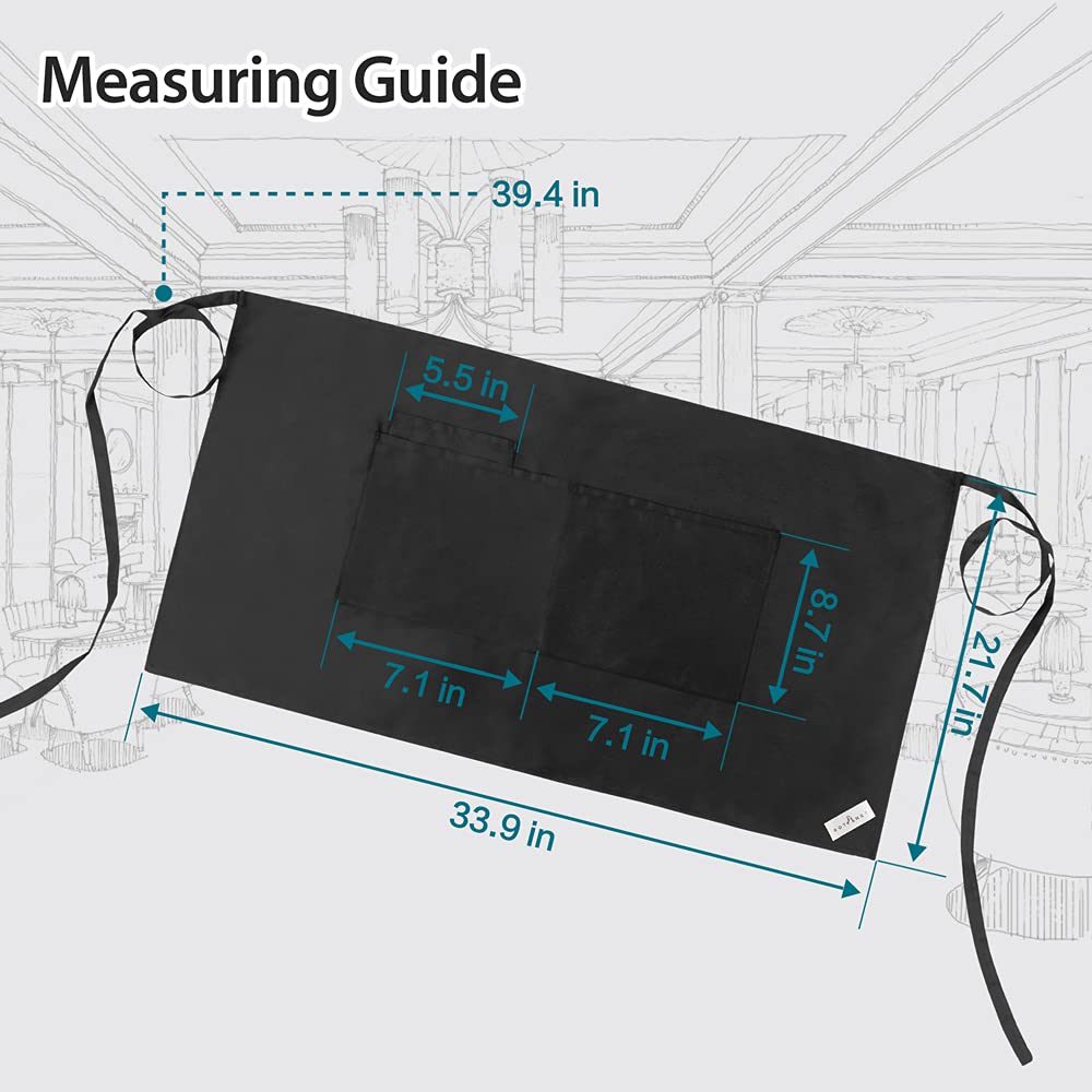 Rotanet Server Aprons Half Bistro Apron With 3 Pockets 22 Inch Long Large Restaurant Waist Apron For Men Women Waterproof Black