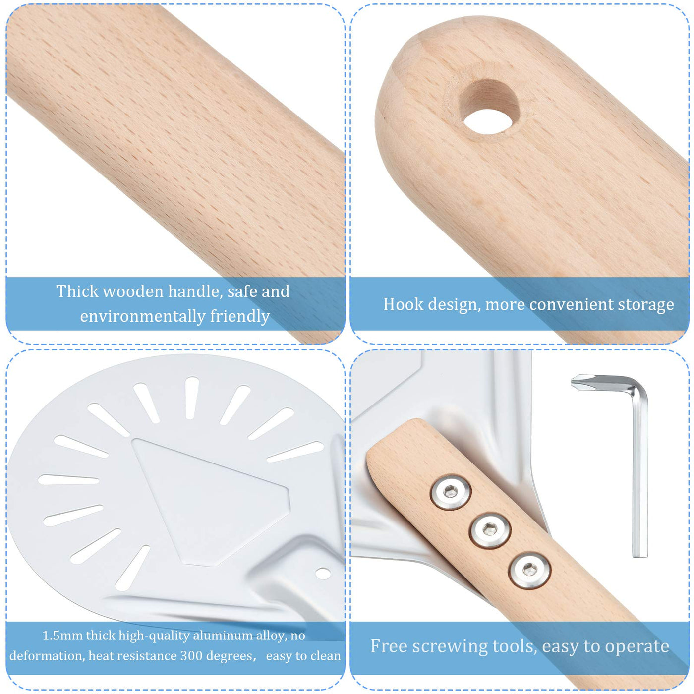 - Q: Does the package include any additional tools? A: Yes, the package includes one round perforated pizza paddle along with one tightening tool.