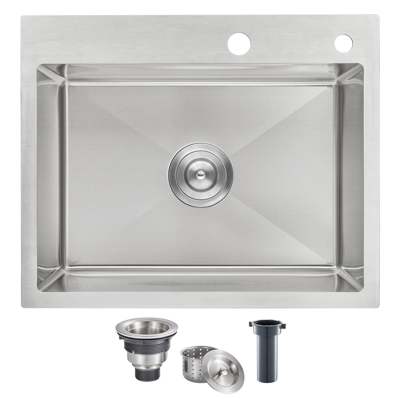 Rovogo 22X18X9 Inch Drop In Kitchen Sink Single Bowl, 304 Stainless Steel Modern Sink Top Mount With 2 Holes, Brushed