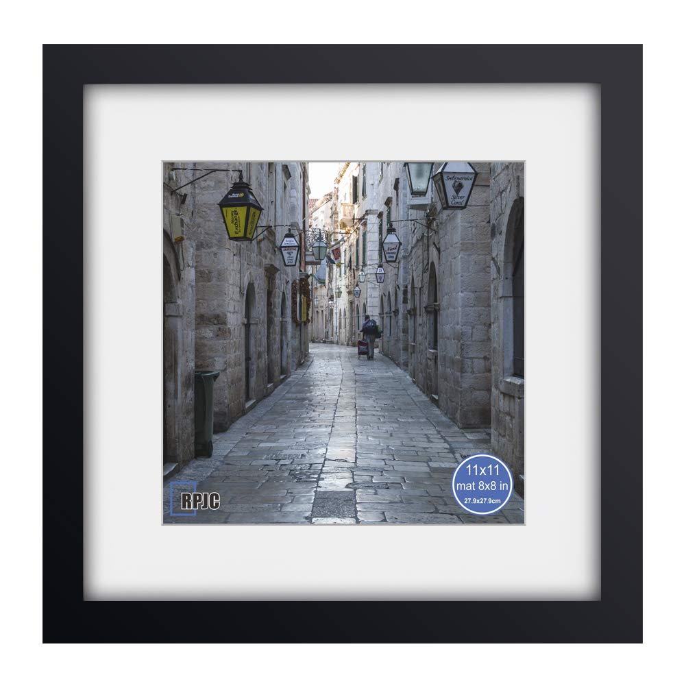 RPJC 11x11 Picture Frame Made of Solid Wood and High Definition Glass Display Pictures 8x8 with Mat or 11x11 Without Mat for Wal
