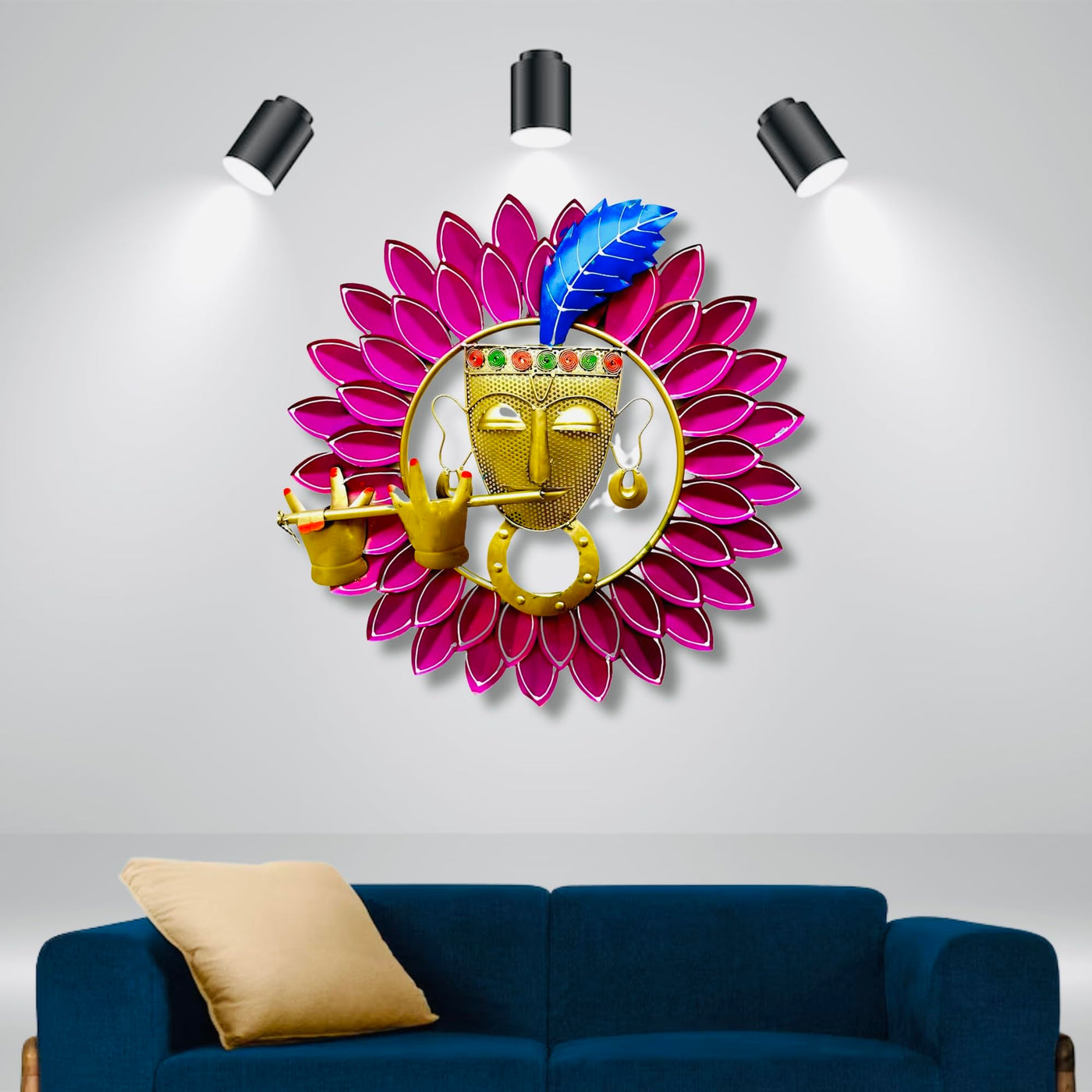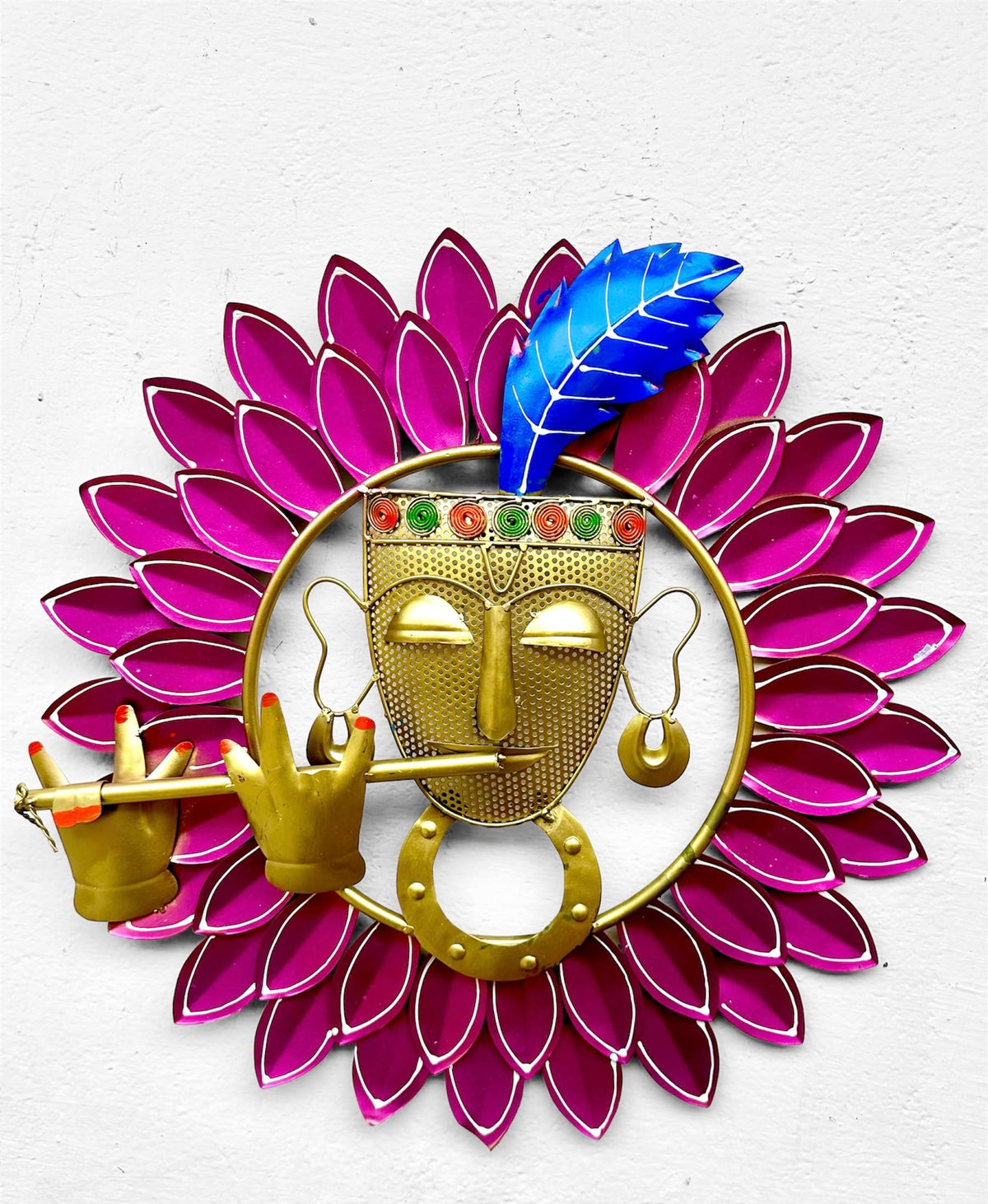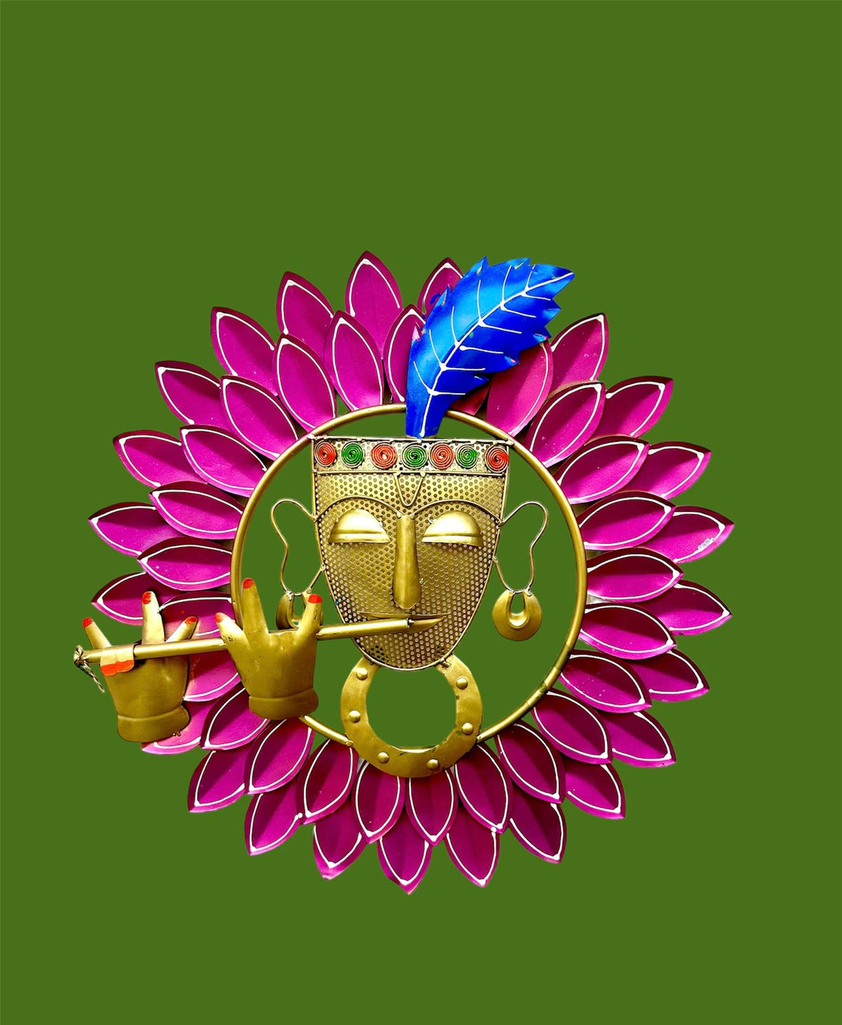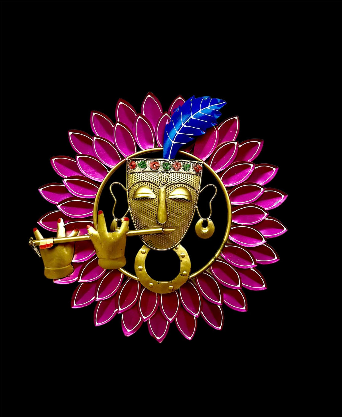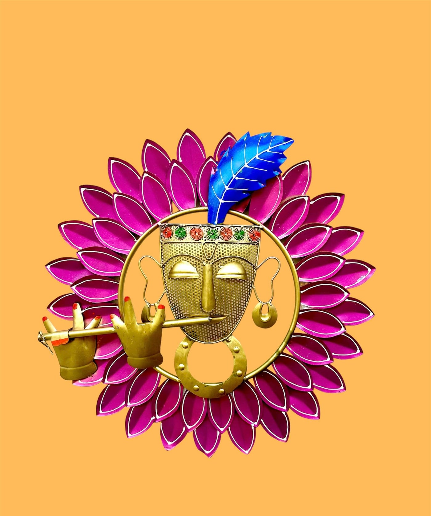 RSN Antique Metal Krishna Playing Basuri Wall Art Frame, Wall Hangings for Home Decoration, Scenery Showpiece Wall Sculpture for