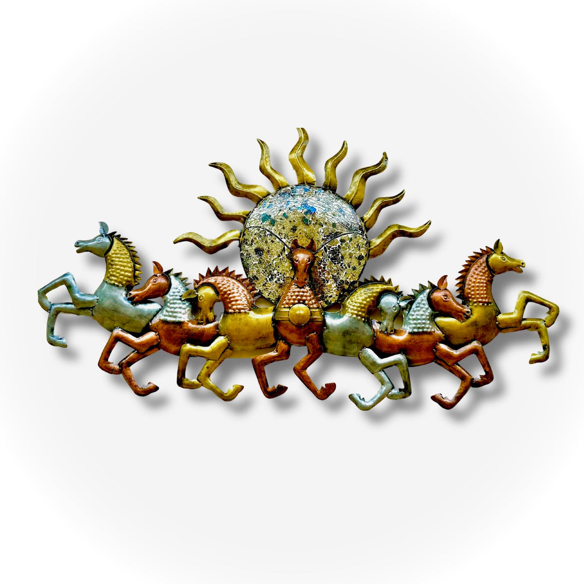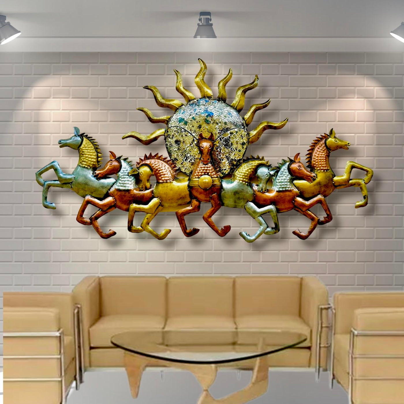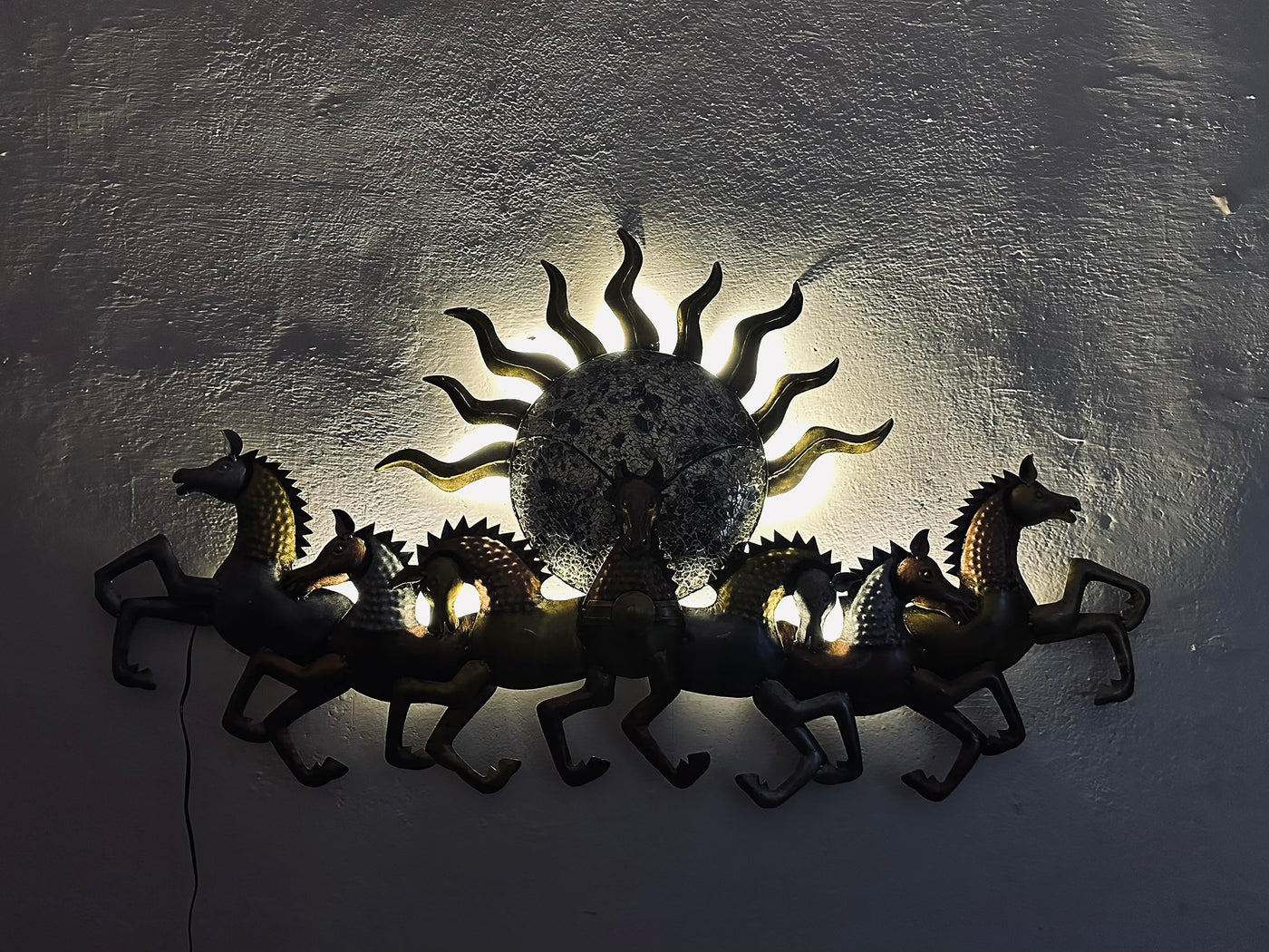 Rsn Metal Wall Art Iron Wall Hanging 7 Horse With Led Light Metal Frame Wall Dcor Entrance, Wall Hanging For Living Room, Wrough