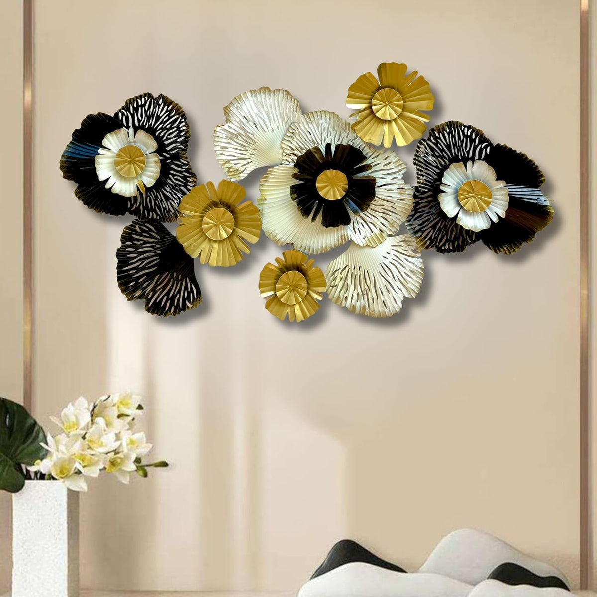 Rsn Multi Flower Leaf Metal Wall Art Frame, Wall Sculpture, Wall Hanging For Living Room, Bedroom, Dining Room, Office Home Deco