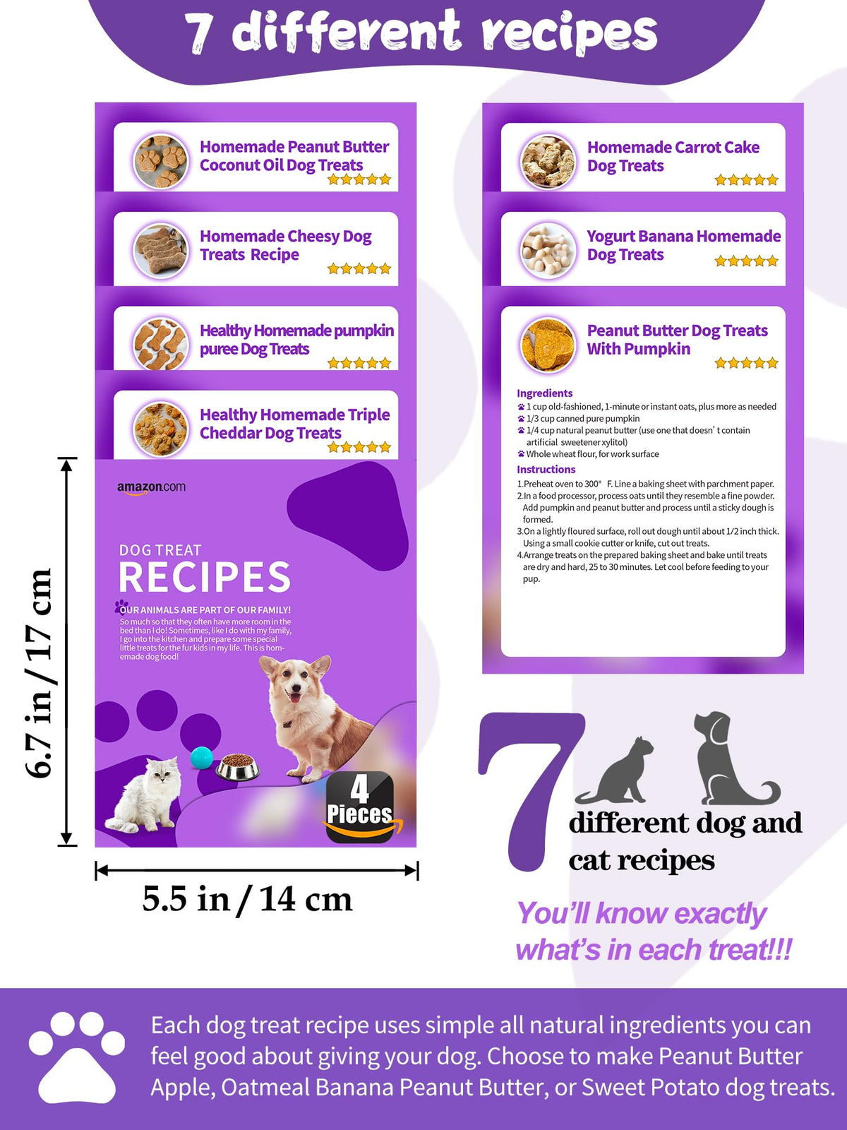 - Q: What types of dog treats can I make with this kit? A: You can make a variety of dog treats using the included recipes, such as peanut butter apple treats, oatmeal banana peanut butter cookies, and sweet potato treats.