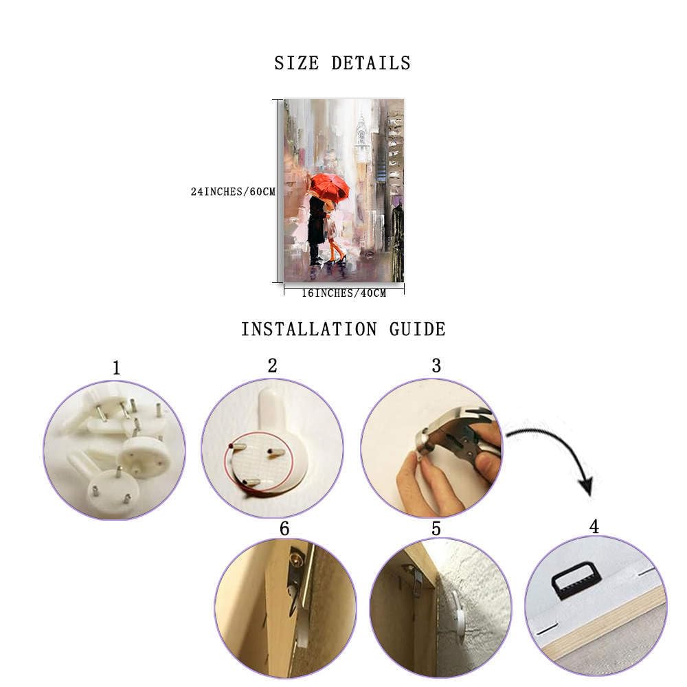 - Q: What type of artwork is featured in this canvas? A: The canvas features a modern New York Cityscape with a romantic theme, depicting lovers under a red umbrella.