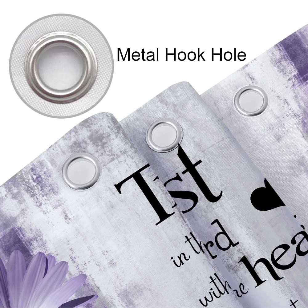 Rustic Farmhouse Purple Shower Curtain Bible Verse Inspirational Shower Curtain Country Farm Bright Violet Daisy Flowers Butterf