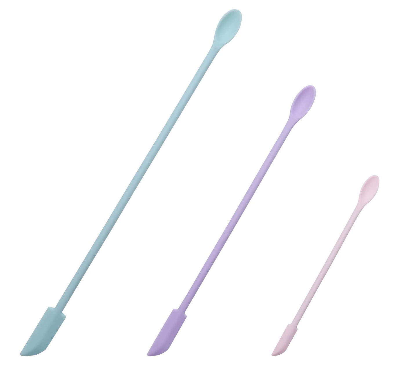 Ruwado 3 Pcs Makeup Spatula Multi Size Silicone Reusable Multi Purpose Tiny Spatula Set For Thin Jar Kitchen Food Cosmetic Bottl