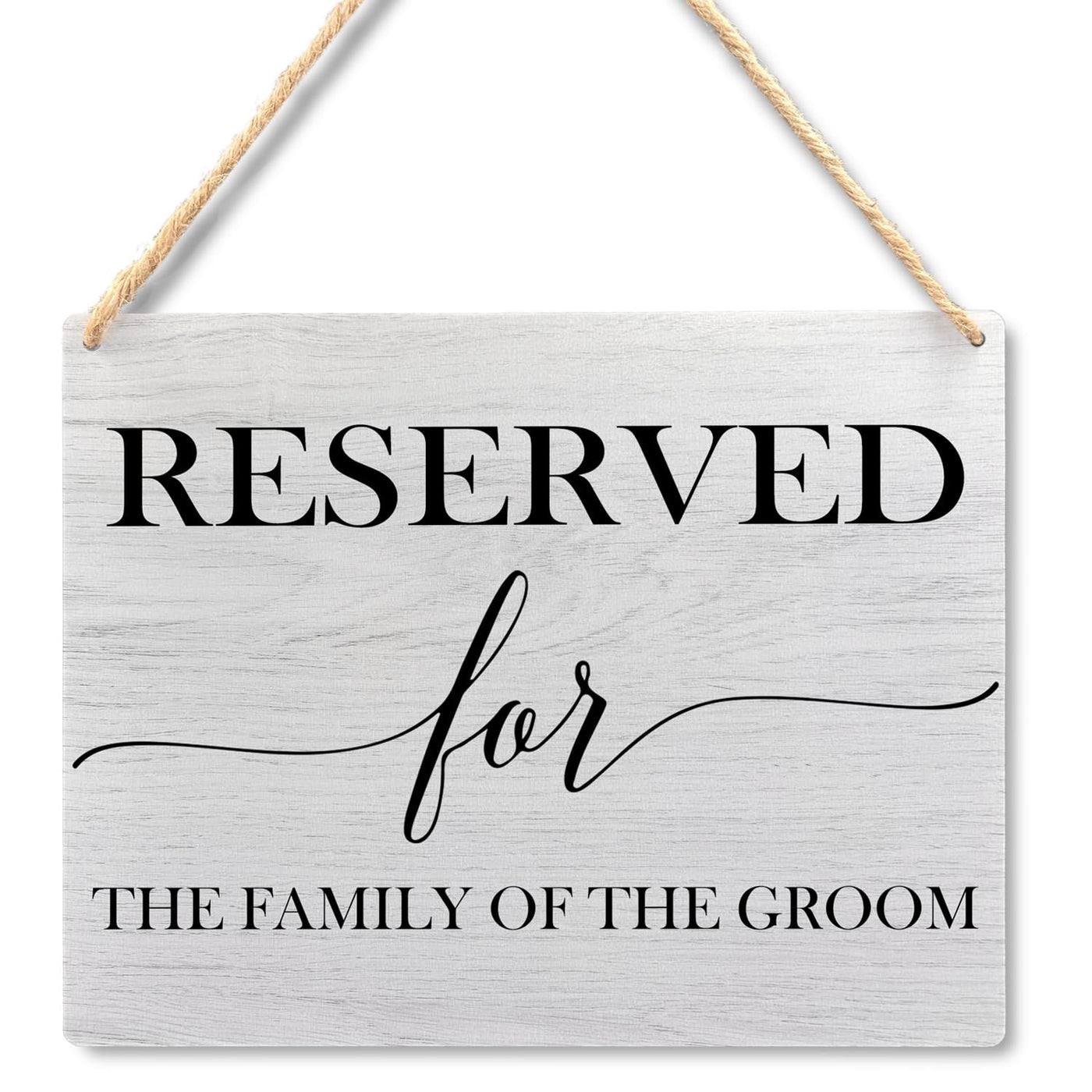 Ryeolo Reserved Row Signs for Wedding - Wooden Hanging Signs, 10.2x7.8 Inch (The Family of the Groom)
