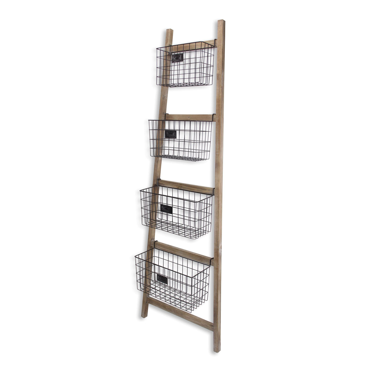 Saffon Wood Storage Ladder | 4 Basket Tiers