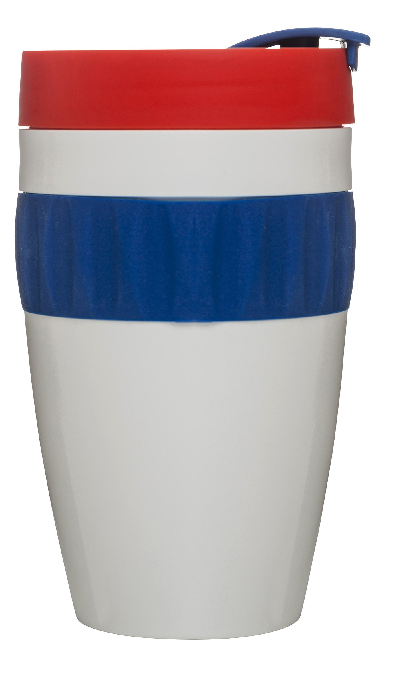 • Q: What color options are available for the Sagaform To Go Mug? A: The mug is available in 8 color combinations, including a white version with blue and red accents.