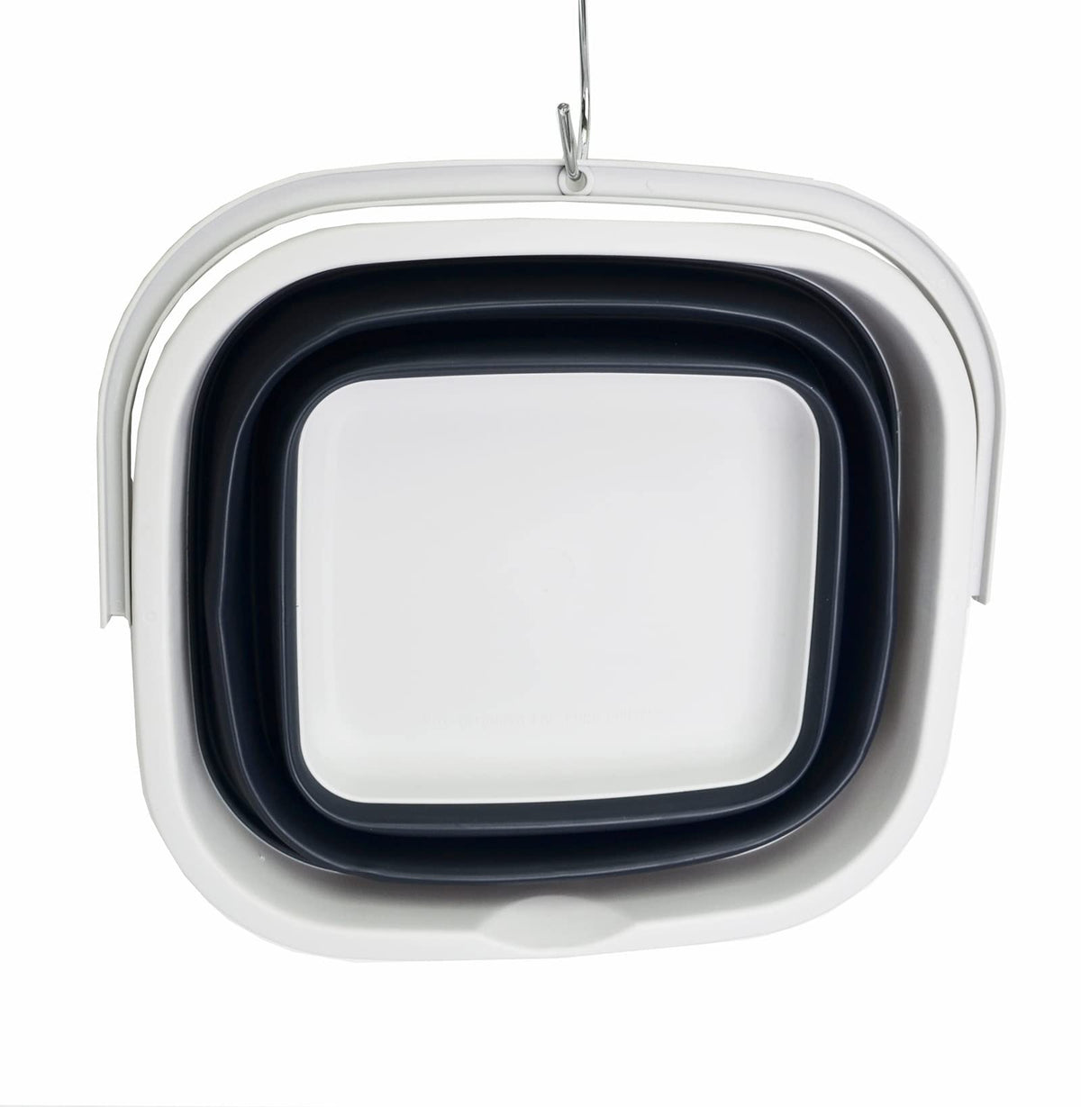 • Q: How compact is the bucket when collapsed? A: When collapsed, the bucket measures 13.6 inches long, 12.7 inches wide, and only 2.1 inches high.